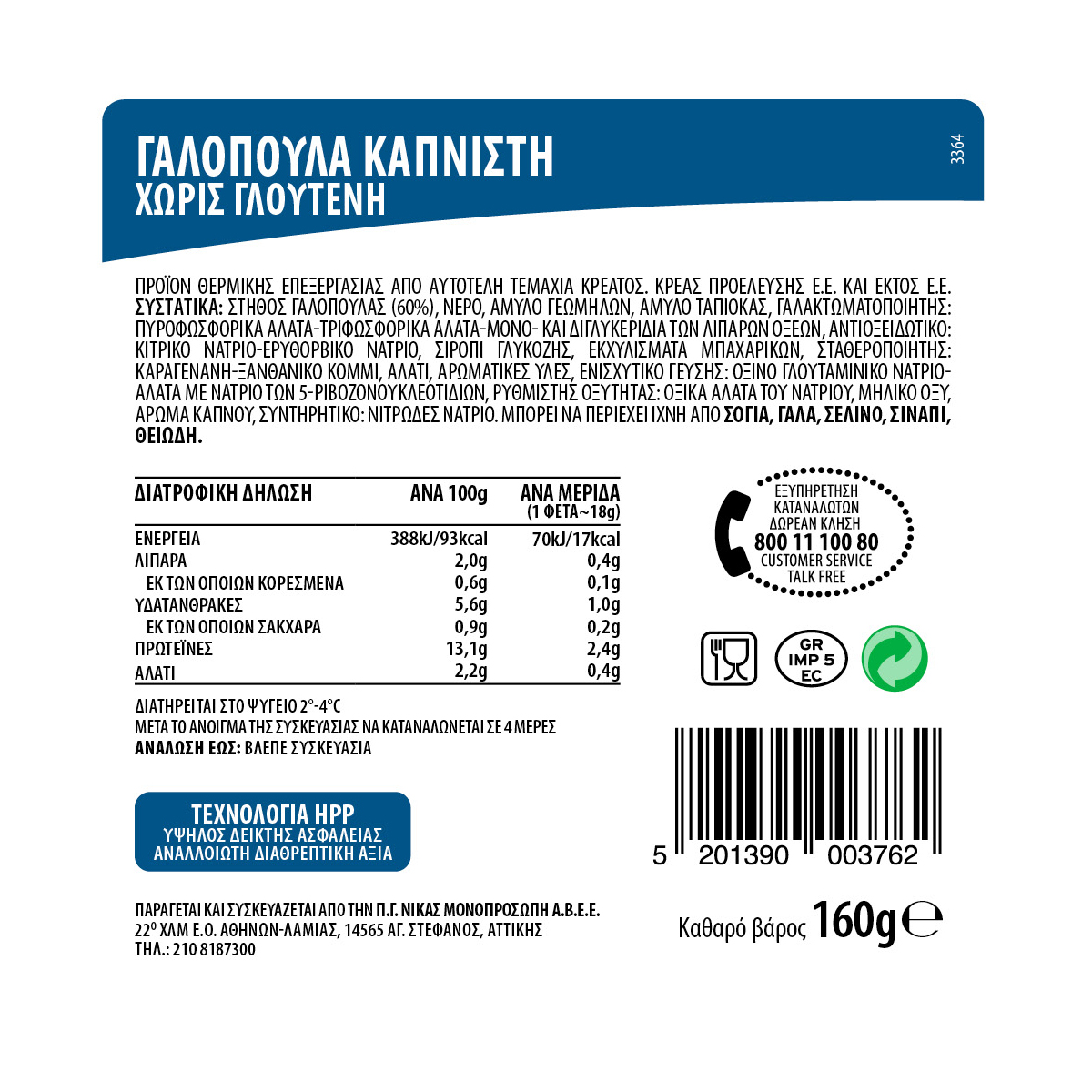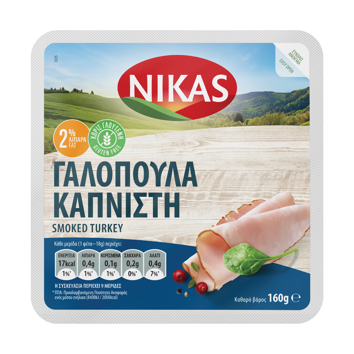 Η Γαλοπούλα Καπνιστή 2% λιπαρά και είναι από φιλέτο γαλοπούλα.