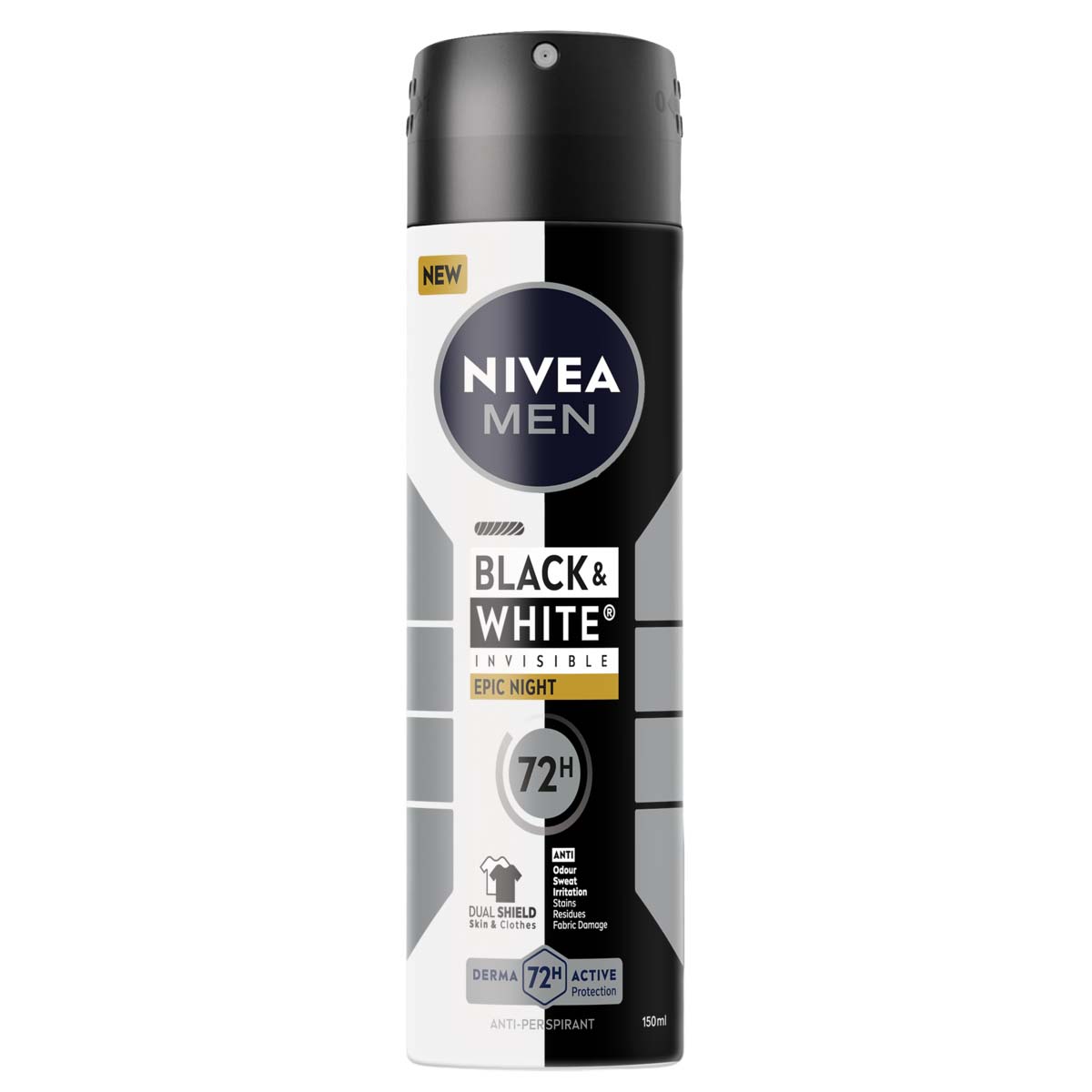 Η σειρά NIVEA Black & White Invisible, με την καινοτόμα τεχνολογία Dual Shield, προσφέρει ισχυρή αόρατη προστασία για την επιδερμίδα και τα ρούχα. Δεν προστατεύει μόνο την επιδερμίδα από τον ιδρώτα, την κακοσμία και τους ερεθισμούς, αλλά προστατεύει και τα ρούχα από λεκέδες, υπολείμματα και φθορά υφάσματος. Το αποτέλεσμα; Σας χαρίζει αυτοπεποίθηση και ελευθερία, από την επιδερμίδα έως τα ρούχα. Με την πατενταρισμένη σύνθεση κατά των λεκέδων, τα αντιιδρωτικά NIVEA Black & White Invisible προσφέρουν προστασία από λευκά σημάδια στα μαύρα ρούχα και από κίτρινους λεκέδες στα λευκά. Αξιόπιστη αντιιδρωτική προστασία 72 ωρών, αποτελεσματική κατά του ιδρώτα και της κακοσμίας, ενώ παράλληλα φροντίζει την επιδερμίδα. Η συμβατότητα με την επιδερμίδα είναι δερματολογικά ελεγμένη και οι συνθέσεις δεν περιέχουν αιθυλική αλκοόλη. Η μοναδική, διάφανη σύνθεση του roll?on εξασφαλίζει 0% λευκά υπολείμματα. Ανακαλύψτε τη σειρά NIVEA Black & White Invisible, διαθέσιμη σε Roll?ons, Sticks και Sprays, που σας κάνει να νιώθετε 100% άνεση στην επιδερμίδα και στα ρούχα σας. Τα αντιιδρωτικά μας προσφέρουν Derma 72H Active προστασία: λειτουργούν σε συνεργασία με την επιδερμίδα, προσφέροντας αξιόπιστη και ισχυρή αποτελεσματικότητα κατά του ιδρώτα και της κακοσμίας, με συνθέσεις φιλικές προς την επιδερμίδα. Παρούσα σε περισσότερες από 160 χώρες, η NIVEA είναι μία από τις μεγαλύτερες και πιο αξιόπιστες μάρκες περιποίησης επιδερμίδας παγκοσμίως, με περισσότερα από 140 χρόνια εμπειρίας. Ως ηγέτης στη διεθνή αγορά περιποίησης επιδερμίδας, οι ερευνητές μας εργάζονται εντατικά για να προσφέρουν υψηλής ποιότητας, δερματολογικά ελεγμένα προϊόντα, κατάλληλα για διάφορους τύπους επιδερμίδας και ανάγκες.