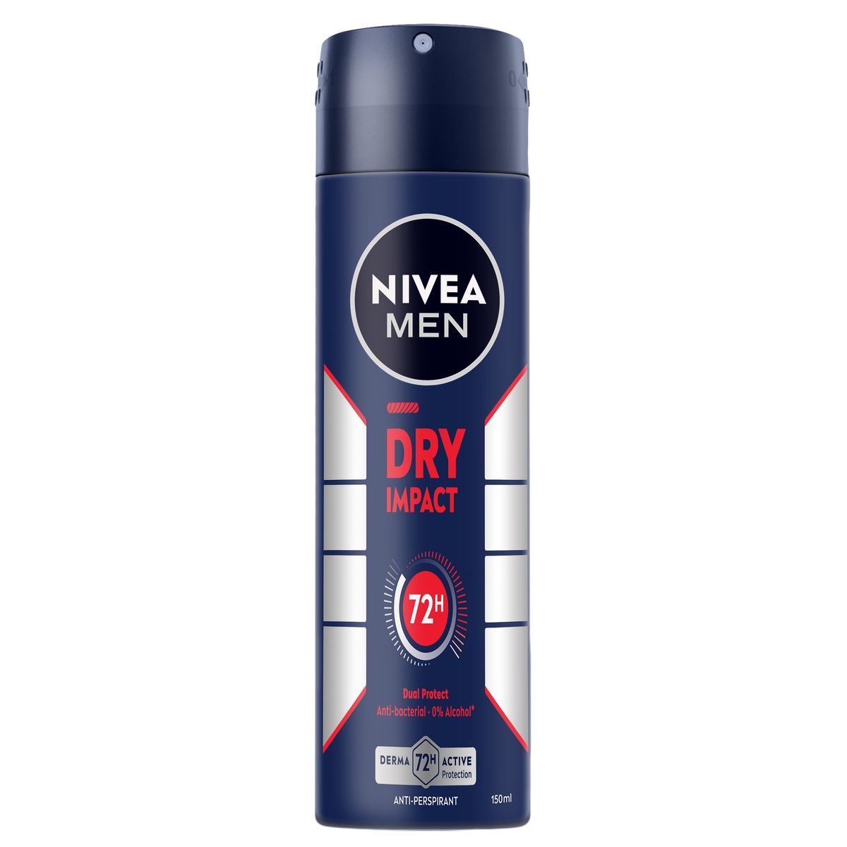 Το NIVEA MEN Dry Impact Anti-Perspirant σας προσφέρει αξιόπιστη προστασία 72 ωρών με μοναδική αίσθηση στην επιδερμίδα. Η αποτελεσματική σύνθεση διπλής προστασίας με 2 αντιβακτηριακά ενεργά συστατικά κρατά τις μασχάλες σας στεγνές και αποτρέπει την κακοσμία. Ταυτόχρονα, αυτή η φιλική προς την επιδερμίδα σύνθεση με 0% αλκοόλη προσφέρει μια άνετη αίσθηση στην επιδερμίδα. Συμβατότητα με την επιδερμίδα, δερματολογικά ελεγμένη. Η μοναδική αίσθηση στεγνής και άνετης επιδερμίδας συνδυάζεται με ένα μοναδικό, αρρενωπό άρωμα από πικάντικες νότες εσπεριδοειδών και βοτάνων. Σχεδιασμένο για άνδρες που θέλουν μέγιστη προστασία με αρρενωπό άρωμα και χωρίς κανένα συμβιβασμό.
