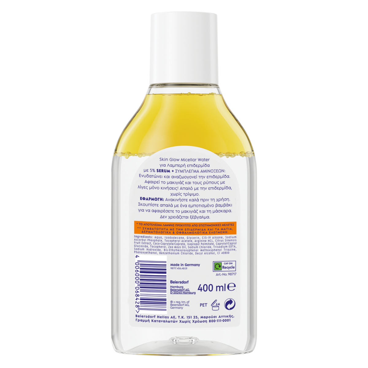 Για λαμπερή και ομοιόμορφη επιδερμίδα με άμεσο εφέ λάμψης. Αφαιρεί αποτελεσματικά το αδιάβροχο μακιγιάζ, τη βρωμιά και τους ρύπους με λίγες μόνο κινήσεις. Εμπλουτισμένο με 5% ορό και βιταμίνη C & E + σύμπλεγμα αμινοξέων. Δίνει ενέργεια και ενυδατώνει την επιδερμίδα. Για λεία και άμεσα λαμπερή επιδερμίδα. Καθαρίζει απαλά, χωρίς να αφήνει λιπαρά υπολείμματα.
