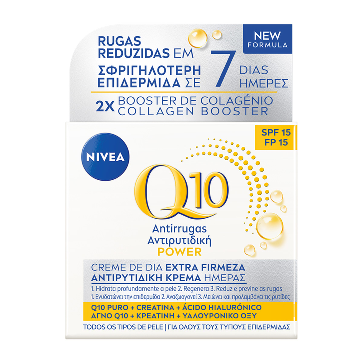 Η επιδερμίδα είναι το πλέον εκτεταμένο όργανο του σώματός μας. Q10 και κρεατίνη είναι ισχυρά δραστικά συστατικά που υπάρχουν φυσιολογικά στην νεανική επιδερμίδα. Με την πάροδο του χρόνου, τα επίπεδά τους μειώνονται, αφήνοντας λιγότερη ενέργεια στην επιδερμίδα για να αναδομηθεί, με αποτέλεσμα να και είναι πιο επιρρεπής σε ρυτίδες και άλλα σημάδια γήρανσης. Η Αντιρυτιδική Κρέμα Ημέρας Q10plus αυξάνει τα επίπεδα Q10 και κρεατίνης της επιδερμίδας, καταπολεμά αποτελεσματικά τις ρυτίδες εκ των έσω, μειώνει την εμφάνισή τους και βοηθάει στην πρόληψη νέων. Η περιποιητική σύνθεση παρέχει στην επιδερμίδα εντατική ενυδάτωση, αφήνοντας μια ευχάριστη και απαλή αίσθηση.