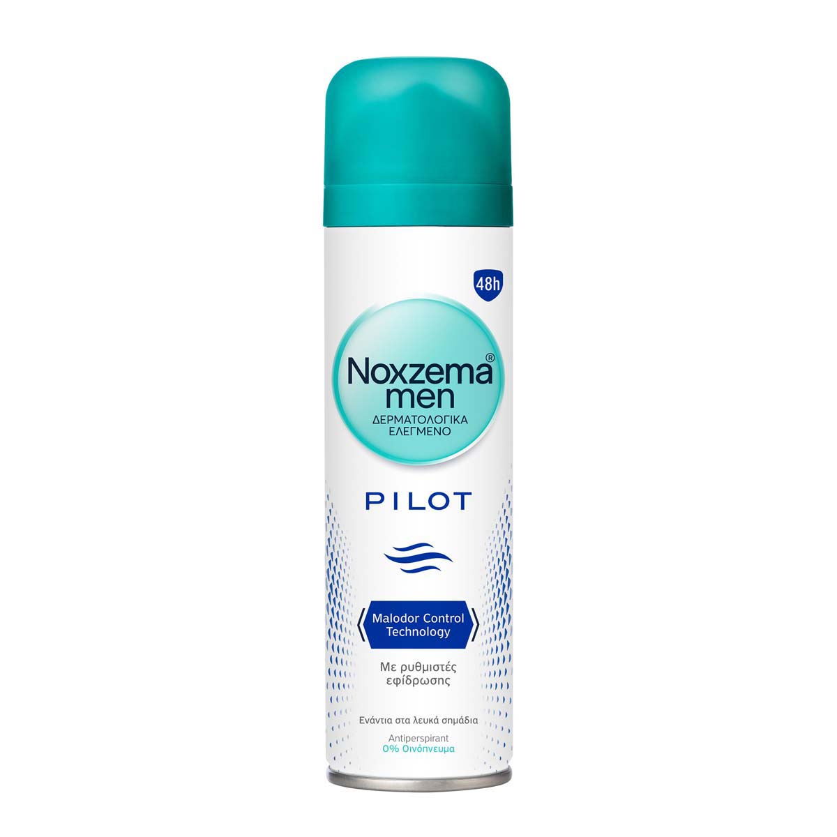 To ανδρικό αντιιδρωτικό αποσμητικό spray Noxzema Men Pilot, με κλινικά αποδεδειγμένη απαλότητα και τεχνολογία Malodor Control απελευθερώνει άρωμα φρεσκάδας που διαρκεί, εξασφαλίζει έλεγχο της εφίδρωσης και προσφέρει αποτελεσματική 48ωρη προστασία από τον ιδρώτα και την κακοσμία. Είναι δερματολογικά ελεγμένο, φιλικό με την επιδερμίδα, έχει σύνθεση ενάντια στα λευκά σημάδια, διακριτικό αρρενωπό άρωμα και δεν περιέχει οινόπνευμα. Εφαρμόστε ένα λεπτό στρώμα στην περιοχή της μασχάλης.