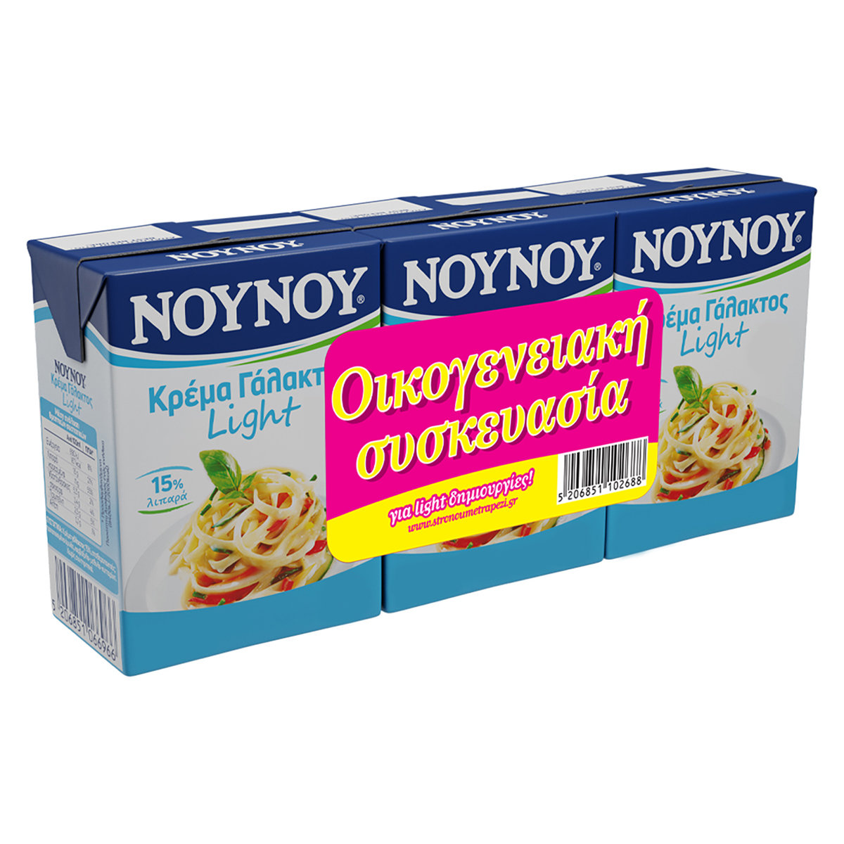 Η κρέμα γάλακτος ΝΟΥΝΟΥ Light είναι ο φυσικός σύμμαχος για λαχταριστή, ελαφριά κουζίνα, διασφαλίζοντας πάντα ένα άψογο μαγειρικό αποτέλεσμα. Συνοδεύει γρήγορα, εύκολα και απλά τα καθημερινά μας γεύματα, δένοντας µε τα υλικά κάθε συνταγής χωρίς να τα επισκιάζει, προσφέροντας ξεχωριστή ανάλαφρη απόλαυση.