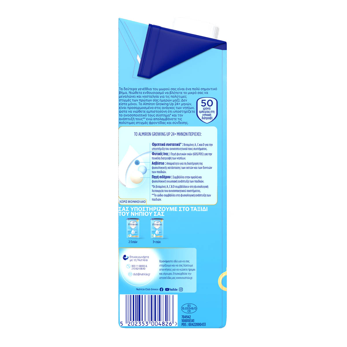 Ειδικά μελετημένο νηπιακό ρόφημα γάλακτος για νήπια από το 2ο έτος. Περιέχει: Συστατικά με Πρεβιοτική δράση-Μοναδικό μίγμα GOS/FOS: Γαλακτό και Φρουκτό - ολιγοσακχαρίτες, μιμούνται τη δομή των ολιγοσακχαριτών που βρίσκονται στο μητρικό γάλα, Βιταμίνες C & D, Ασβέστιο, Σίδηρο, Πολυακόρεστα Λιπαρά Οξέα: DHA (Ωμέγα 3), Χωρίς τεχνητά συντηρητικά, Χωρίς Φοινικέλαιο.