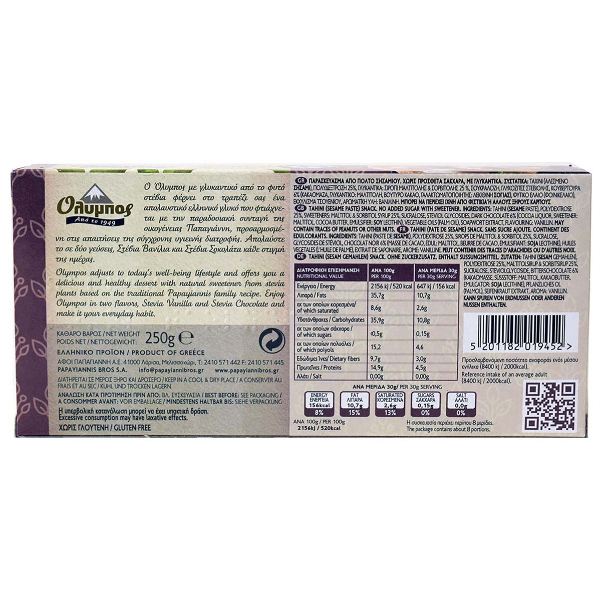 Παρασκεύασμα από πολτό σουσαμιού, χωρίς πρόσθετα σάκχαρα, με γλυκαντικά.