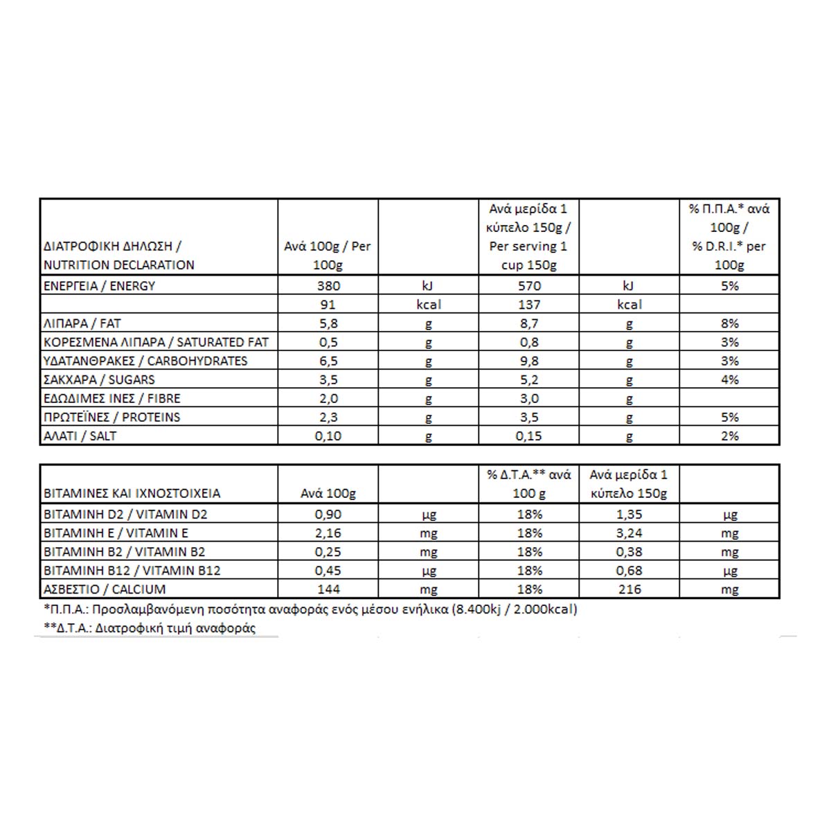 | Ασβέστιο (ανά 100g) | 144 mg |