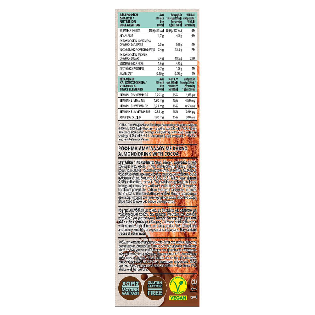 Η ΟΛΥΜΠΟΣ πιστή στη φιλοσοφία της στο να προσφέρει προϊόντα κορυφαίας ποιότητας, επιλέγει τους καλύτερους καρπούς και σας προσφέρει το ΚΑΡΠΟΣ ΑΜΥΓΔΑΛΟ ΚΑΚΑΟ. Όλη η απόλαυση σε ένα 100% φυτικό ρόφημα αμυγδάλου με ασβέστιο και βιταμίνες Β2, Β12, D2 και Ε! Για να έχετε στο ποτήρι σας όλη τη γεύση του αμυγδάλου, σε συνδυασμό με απολαυστικό κακάο!