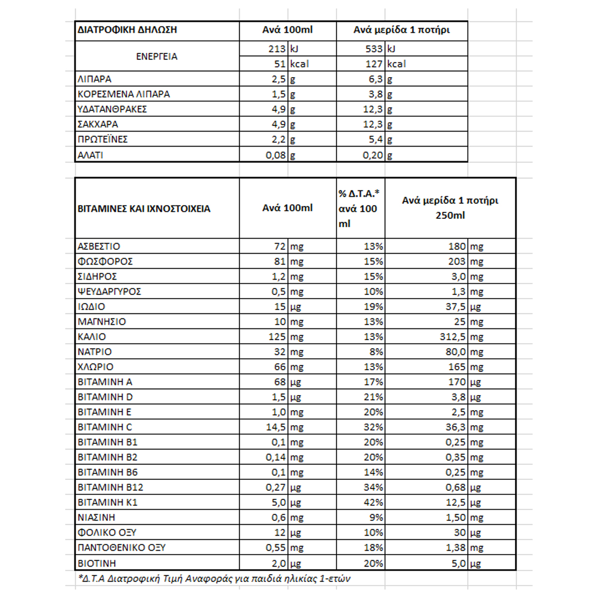 | Βιταμίνη D2 (ανά 100g) | 2.5 µg |