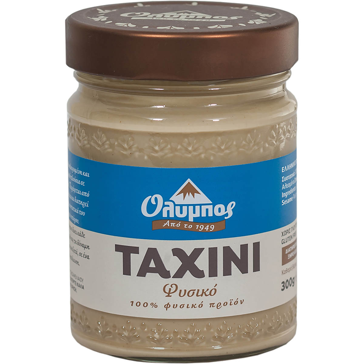 Το ταχίνι «Όλυμπος» είναι απόλυτα φυσικό προϊόν διατροφής που αποτελείται από αποφλοιωμένους, ελαφρά ψημένους και αλεσμένους σπόρους σησαμιού. Είναι μια φυτική, ολοκληρωμένη τροφή πλούσια σε πρωτεΐνες και ασβέστιο. Μπορείτε να το τρώτε πάνω σε μια φέτα ψωμί ή φρυγανιά, να το ανακατέψετε με λίγο μέλι (ένα τέλειο συμπλήρωμα για το πρωινό σας!) ή να το χρησιμοποιείτε σε σάλτσες, σούπες ή σε άλλες εκλεκτές συνταγές.