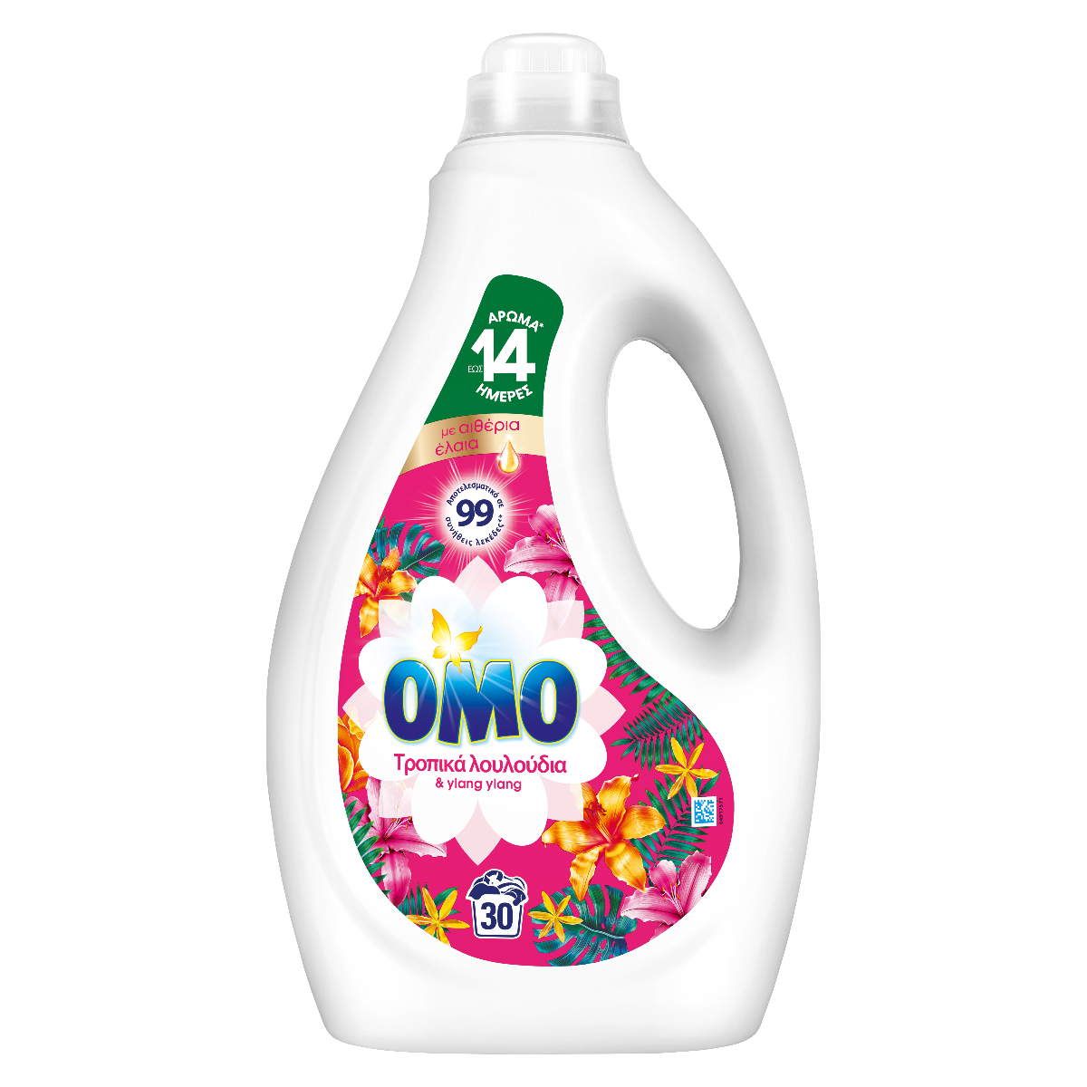 Το ΟΜΟ υγρό απορρυπαντικό για το πλυντήριο με Τροπικά Λουλούδια χαρίζει ένα άρωμα φρεσκοπλυμένου που διαρκεί έως και 14 ημέρες. Κάθε δόση χαρίζει εξαιρετική καθαριότητα, ενώ τα εμπλουτισμένα με αιθέρια έλαια αρώματα που περιέχει έχουν επιλεχτεί ειδικά για να σας προσφέρουν φρεσκάδα που διαρκεί όλη μέρα.