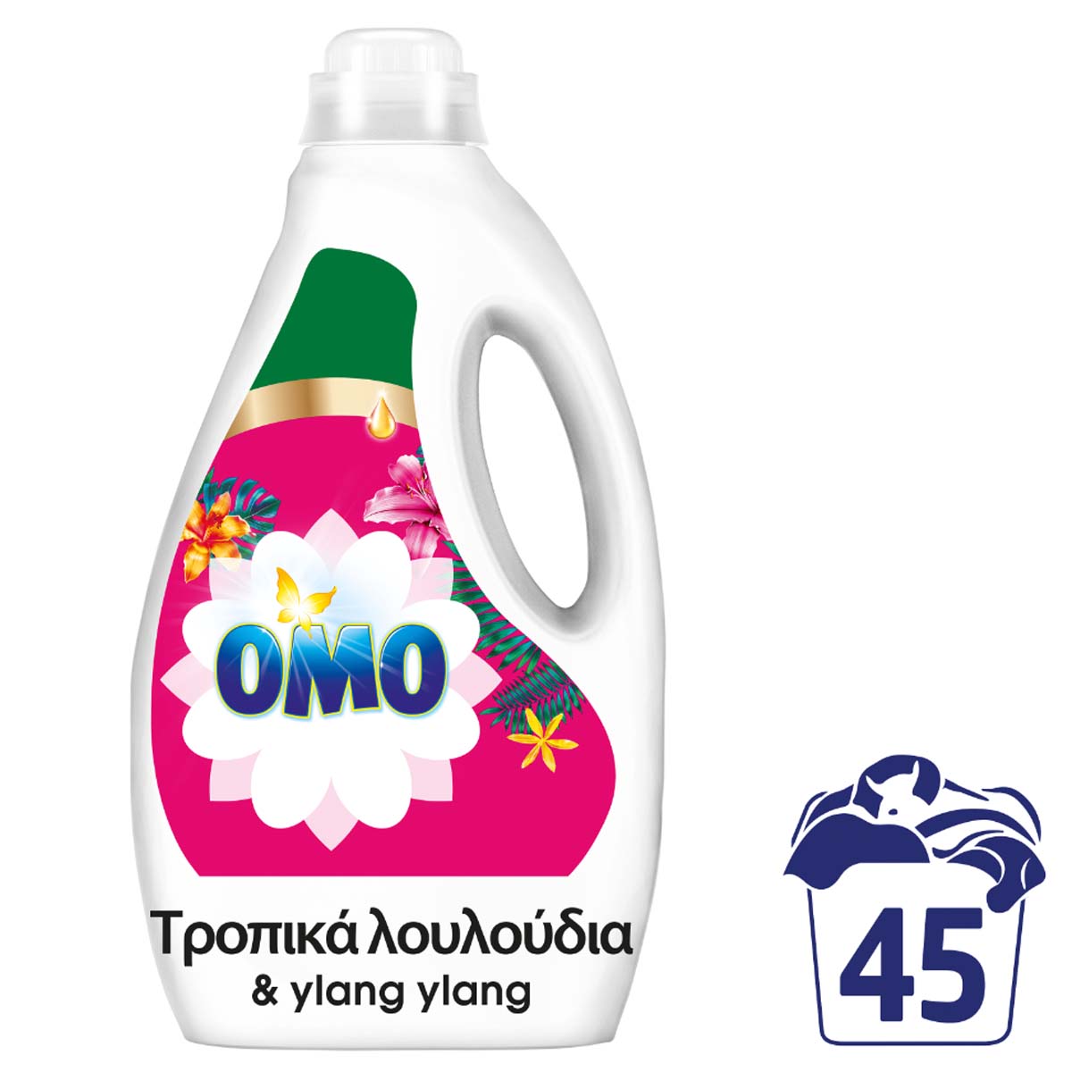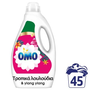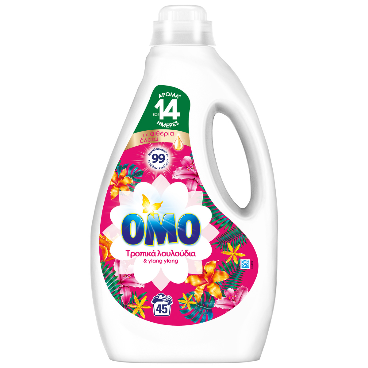 Το ΟΜΟ υγρό απορρυπαντικό για το πλυντήριο με Τροπικά Λουλούδια χαρίζει ένα άρωμα φρεσκοπλυμένου που διαρκεί έως και 14 ημέρες. Κάθε δόση χαρίζει εξαιρετική καθαριότητα, ενώ τα εμπλουτισμένα με αιθέρια έλαια αρώματα που περιέχει έχουν επιλεχτεί ειδικά για να σας προσφέρουν φρεσκάδα που διαρκεί όλη μέρα.