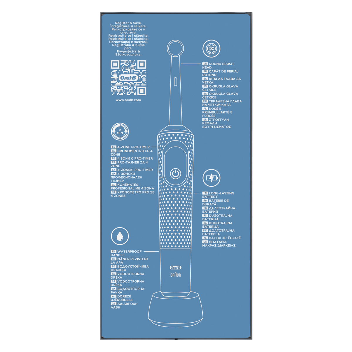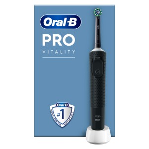Η επαναφορτιζόμενη ηλεκτρική οδοντόβουρτσα Oral-B Vitality Pro προσφέρει κλινικά αποδεδειγμένο ανώτερο καθαρισμό σε σχέση με μια απλή χειροκίνητη οδοντόβουρτσα. Aφαιρεί απαλά έως και 100% βακτηριακή πλάκα σε σχέση με μια χειροκίνητη οδοντόβουρτσα. Διαθέτει 3 προγράμματα βουρτσίσματος: Καθημερινός καθαρισμός, Ευαίσθητο και Πολύ Ευαίσθητο και το ενσωματωμένο χρονόμετρο στη λαβή σας βοηθά να βουρτσίζετε για 2 λεπτά όπως συνιστούν οι οδοντίατροι. Και το καλύτερο απ' όλα, διατίθεται από την Oral-B, τη νούμερο 1 μάρκα ηλεκτρικής οδοντόβουρτσας που χρησιμοποιούν οι οδοντίατροι παγκοσμίως.