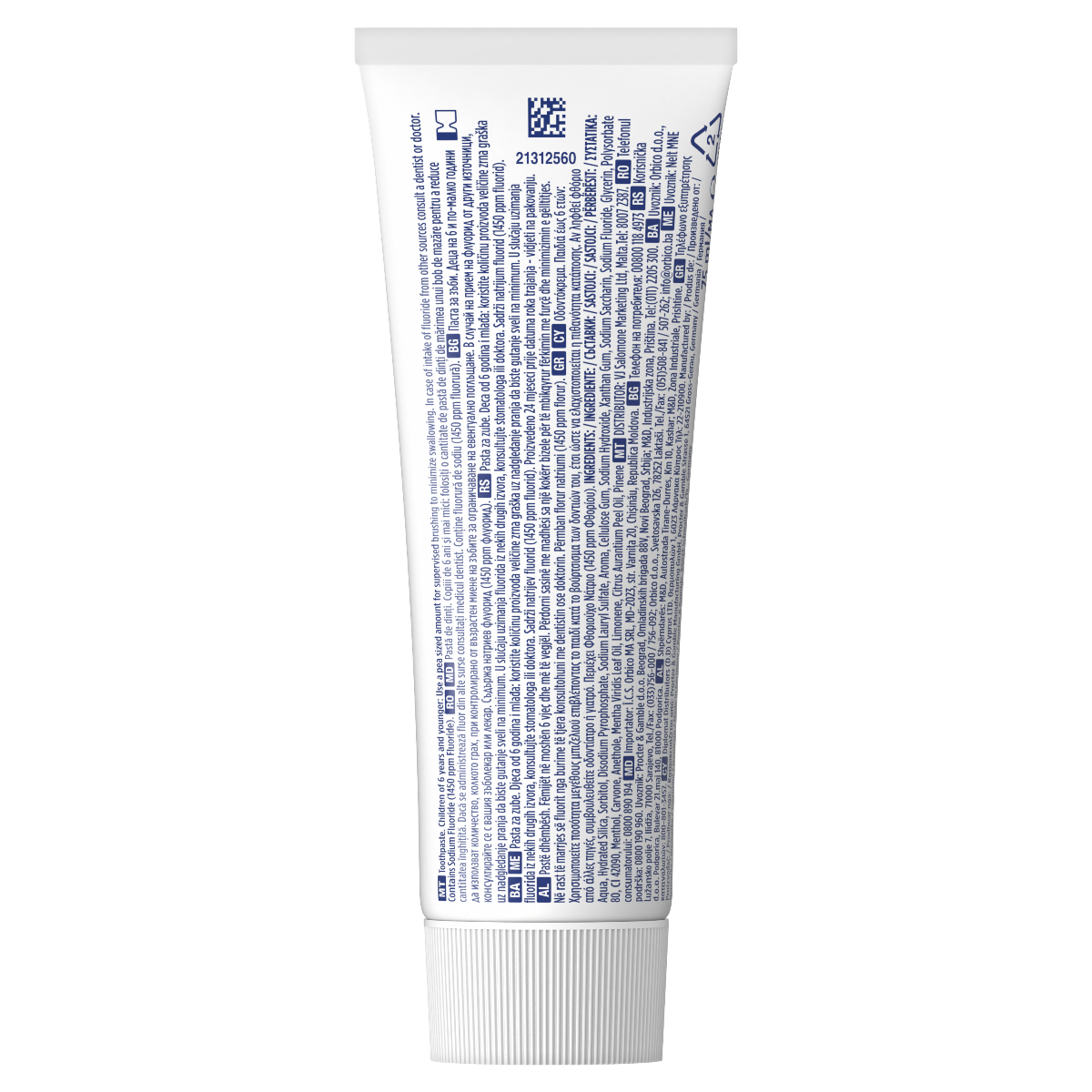 Aqua, Sorbitol, Hydrated Silica, Sodium Lauryl Sulfate, Aroma, Cellulose Gum, Zinc Citrate, Chondrus Crispus Powder, Sodium Saccharin, Sodium Fluoride, CI 77891, Hydroxyethylcellulose, Sodium Citrate, Copernicia Cerifera Cera, Mica, Limonene, Polysorbate 80, Glycerin, Cetylpyridinium Chloride, CI 74260, CI 74160.