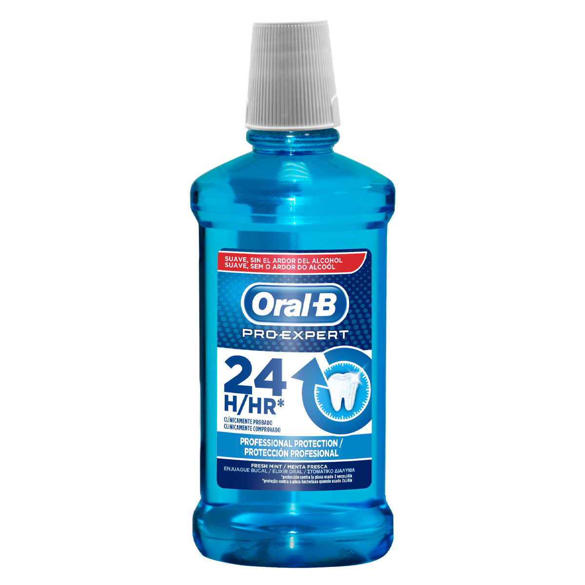 Το στοματικό διάλυμα Oral-B Pro-Expert Professional Protection δρα αποτελεσματικά σε όλες τις περιοχές του στόματος παρέχοντας 24ωρη προστασία από την πλάκα, όταν χρησιμοποιείται δύο φορές την ημέρα. Είναι ήπιο χωρίς να αφήνει αίσθηση καψίματος και διαθέτει ευχάριστη γεύση μέντας για αίσθηση φρεσκάδας και καθαριότητας στο στόμα.