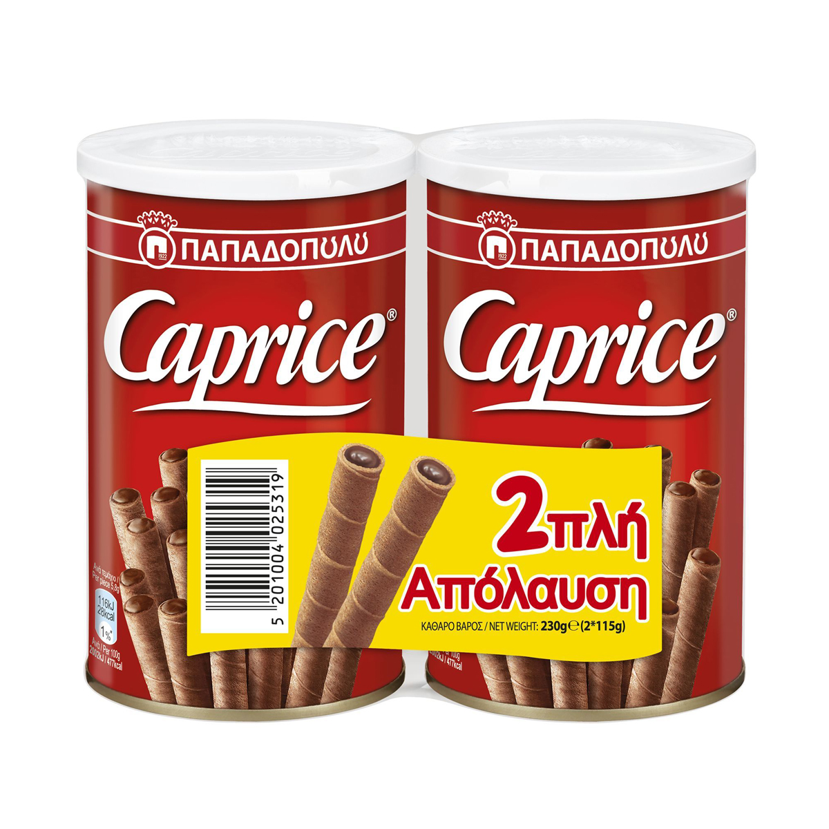 Τα Caprice είναι ένας ανεπανάληπτος συνδυασμός τραγανής γκοφρέτας και βελούδινης γέμισης κρέμας φουντουκιού και κακάο που λιώνει στο στόμα και απογειώνει τις αισθήσεις! Απόλαυσε τα αγαπημένα σου Caprice και παγωμένα !