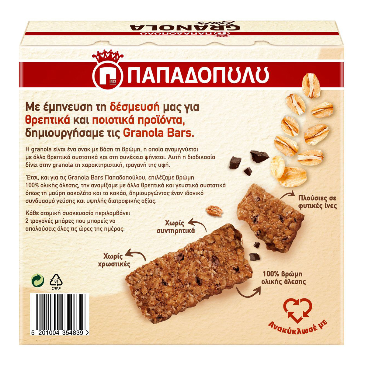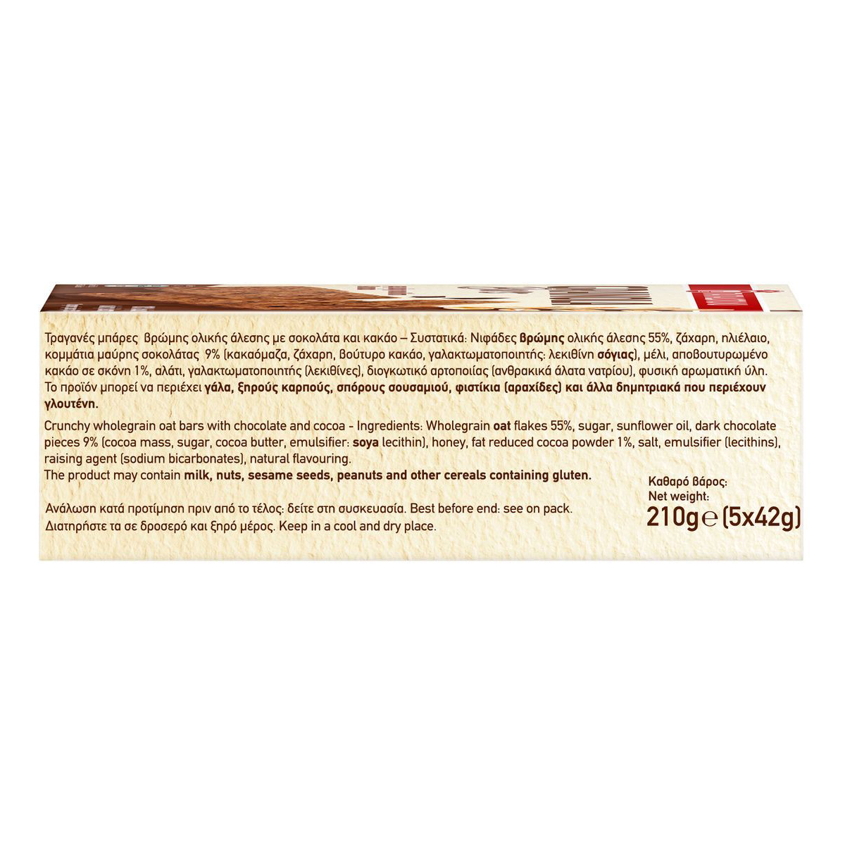 Τραγανές νιφάδες βρώμης 100% ολικής άλεσης ενώθηκαν με κομμάτια μαύρης σοκολάτας κακάογια να δημιουργήσουν μια μπάρα η οποία αποτελεί το ιδανικό θρεπτικό snack για όλη τη μέρα.