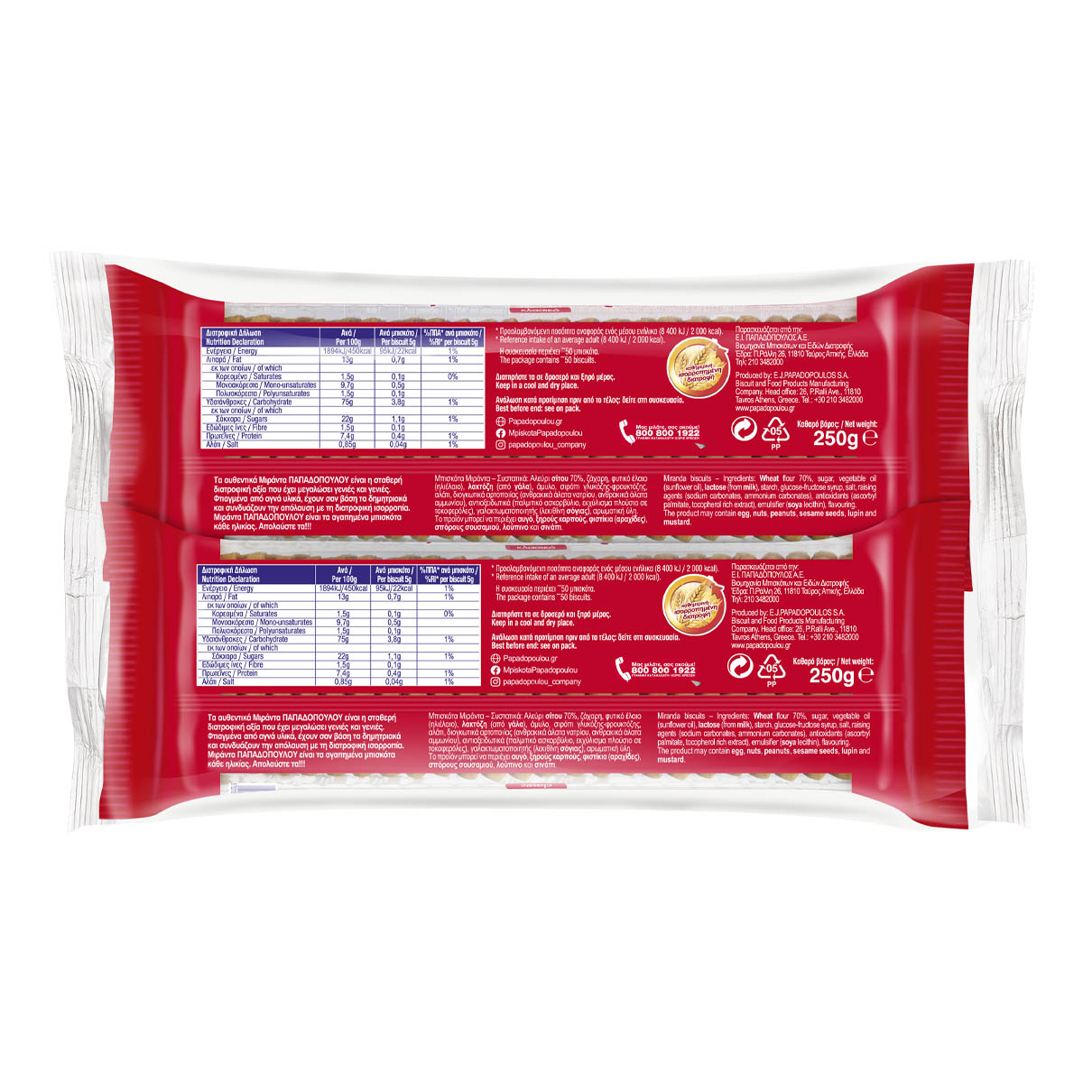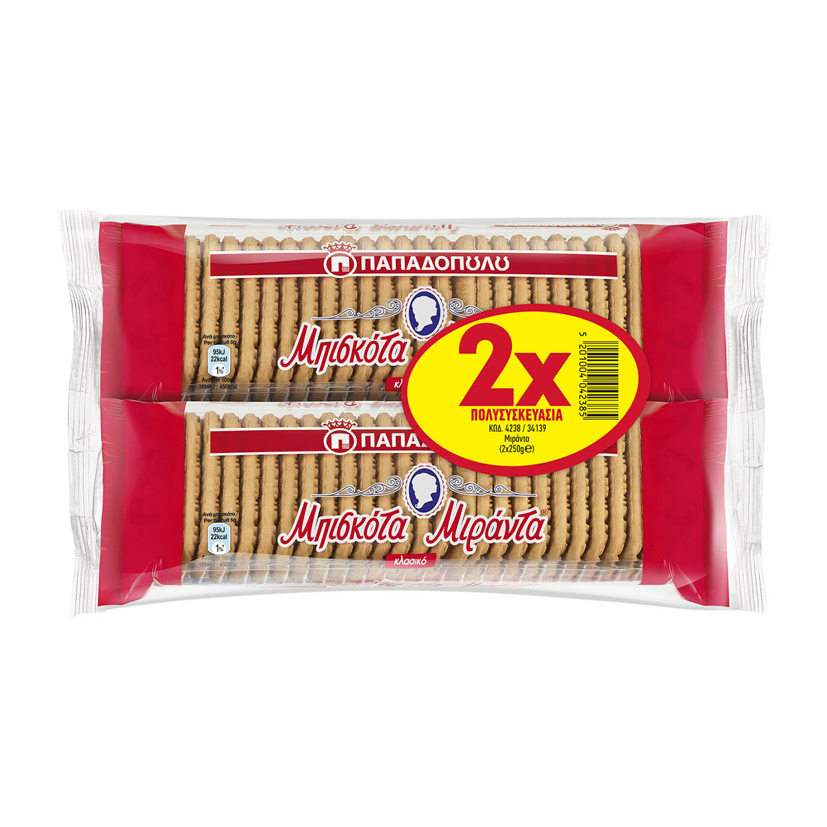 Τα Μπισκότα Μιράντα είναι τα αγαπημένα μπισκότα κάθε ηλικίας που συνδυάζουν την απόλαυση με ευχάριστες αναμνήσεις από τα παιδικά μας χρόνια. Με υψηλή περιεκτικότητα σε δημητριακά, σκέτο ή και με ροφήματα μπορεί να αποτελέσει ένα αγαπημένο σνακ στα πλαίσια μιας ισορροπημένης διατροφής μικρών και μεγάλων.