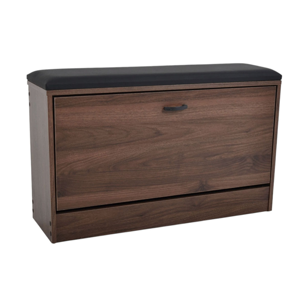 Παπουτσοθήκη ξύλινη με ένα διπλό ράφι ιδανική για να τακτοποιήσετε και να προστατέψετε τα παπούτσια σας. Διαθέτει ενσωματωμένο μαύρο μαξιλάρι και μπορεί να χρησιμοποιηθεί και ως σκαμπό. Αποτελεί πρακτική λύση για έπιπλο εισόδου.