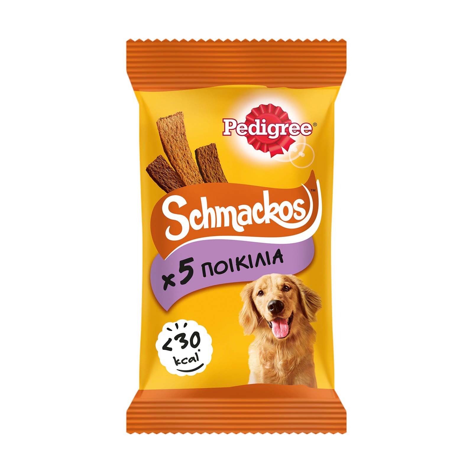 Τα PEDIGREE® SCHMACKOS™ είναι τρυφερές λιχουδιές σε γεύσεις Μοσχάρι, Αρνάκι & Πουλερικά που λατρεύουν οι σκύλοι. Συμπληρωματική τροφή για σκύλους άνω των 4 μηνών. Λιγότερο από 30 kcal / κομμάτι. Με Ωμέγα 6 που βοηθούν τους σκύλους να είναι πάντα σε φόρμα. Με Βιταμίνη Ε που τους βοηθάει να διατηρούν τη φυσική τους άμυνα. Χωρίς τεχνητές χρωστικές ή αρώματα.