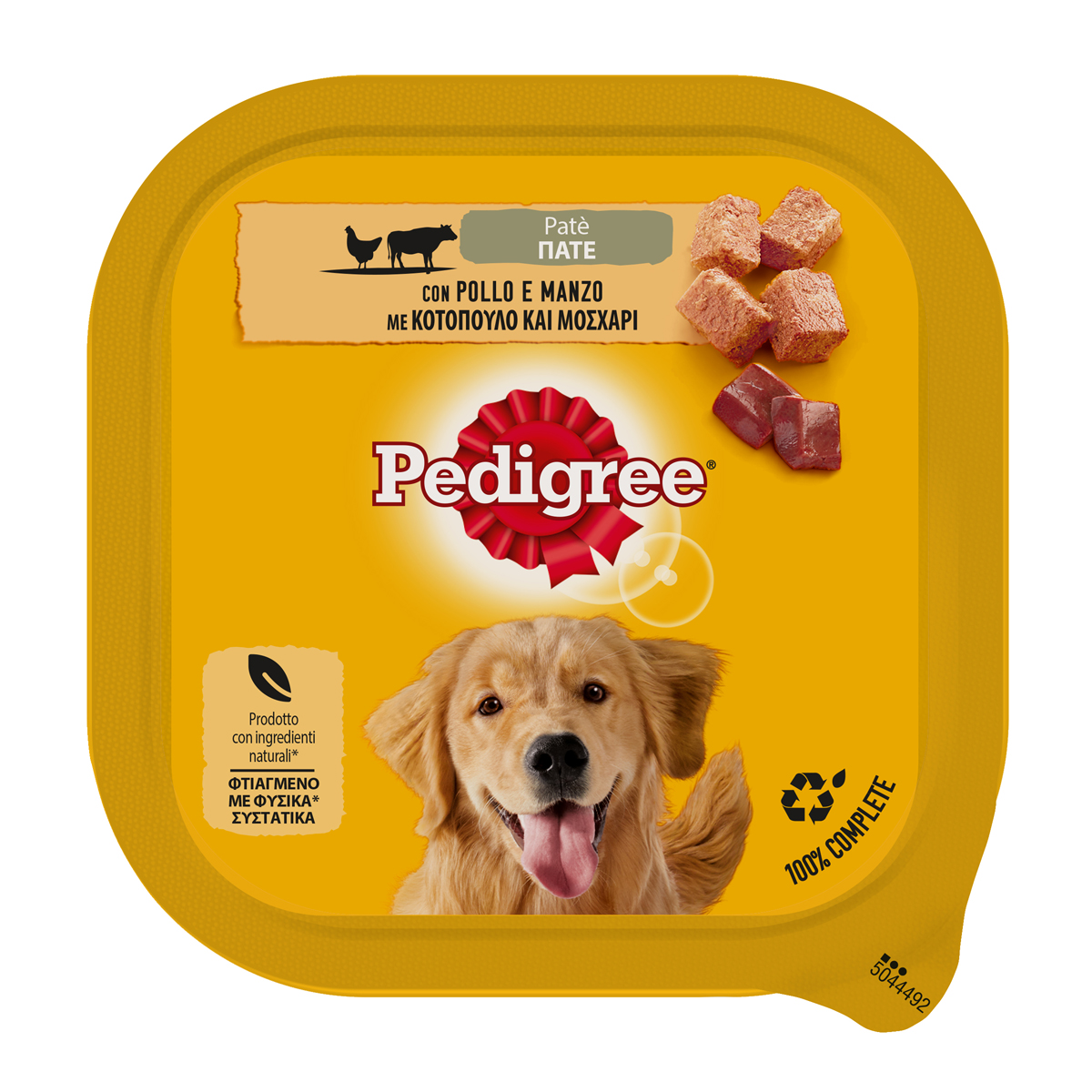 PEDIGREE® Πλήρης Υγρή Τροφή Κοτόπουλο & Μοσχάρι σε Δισκάκι 300g. Τα προϊόντα μας βοηθούν να έχει ο σκύλος ό,τι χρειάζεται καθημερινά: υγιή οστά, υγιές δέρμα και τρίχωμα, και υγιές ανοσοποιητικό σύστημα. Η τροφή για σκύλους Pedigree έχει αναπτυχθεί με τη βοήθεια κτηνιάτρων και διατροφολόγων του Waltham™ Centre for Pet Nutrition. Περιέχει όλα τα απαραίτητα θρεπτικά συστατικά για τη βέλτιστη λειτουργία της πέψης, για υγιές δέρμα και τρίχωμα, για ισχυρή φυσική άμυνα και γερά οστά. Οι κονσέρβες της Pedigree δεν περιέχουν τεχνητές χρωστικές και αρωματικές ουσίες ούτε συντηρητικά.