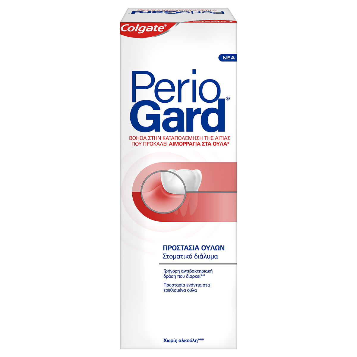 Το στοματικό διάλυμα PerioGard ΠΡΟΣΤΑΣΙΑ ΟΥΛΩΝ βοηθά στην καταπολέμηση της αιτίας που προκαλεί αιμορραγία στα ούλα* και τον ερεθισμό προτού εμφανιστεί. Δεν αντιμετωπίζει απλά τα συμπτώματα. Το καταπραϋντικό στοματικό διάλυμα δρα αποτελεσματικά και διατηρεί τα ούλα και τα δόντια σας υγιή. *Βοηθά στην καταπολέμηση της βακτηριακής πλάκας, προτού εμφανιστεί αιμορραγία στα ούλα.