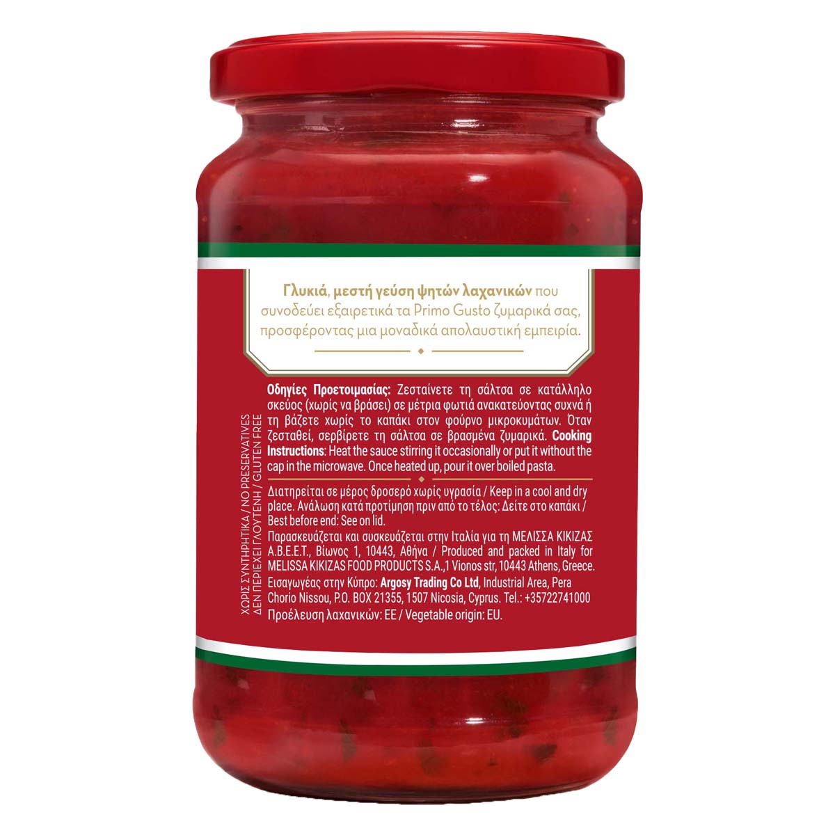 Γλυκιά, μεστή γεύση ψητών λαχανικών που συνοδεύει εξαιρετικά τα Primo Gusto ζυμαρικά σας, προσφέροντας μια μοναδικά απολαυστική εμπειρία.