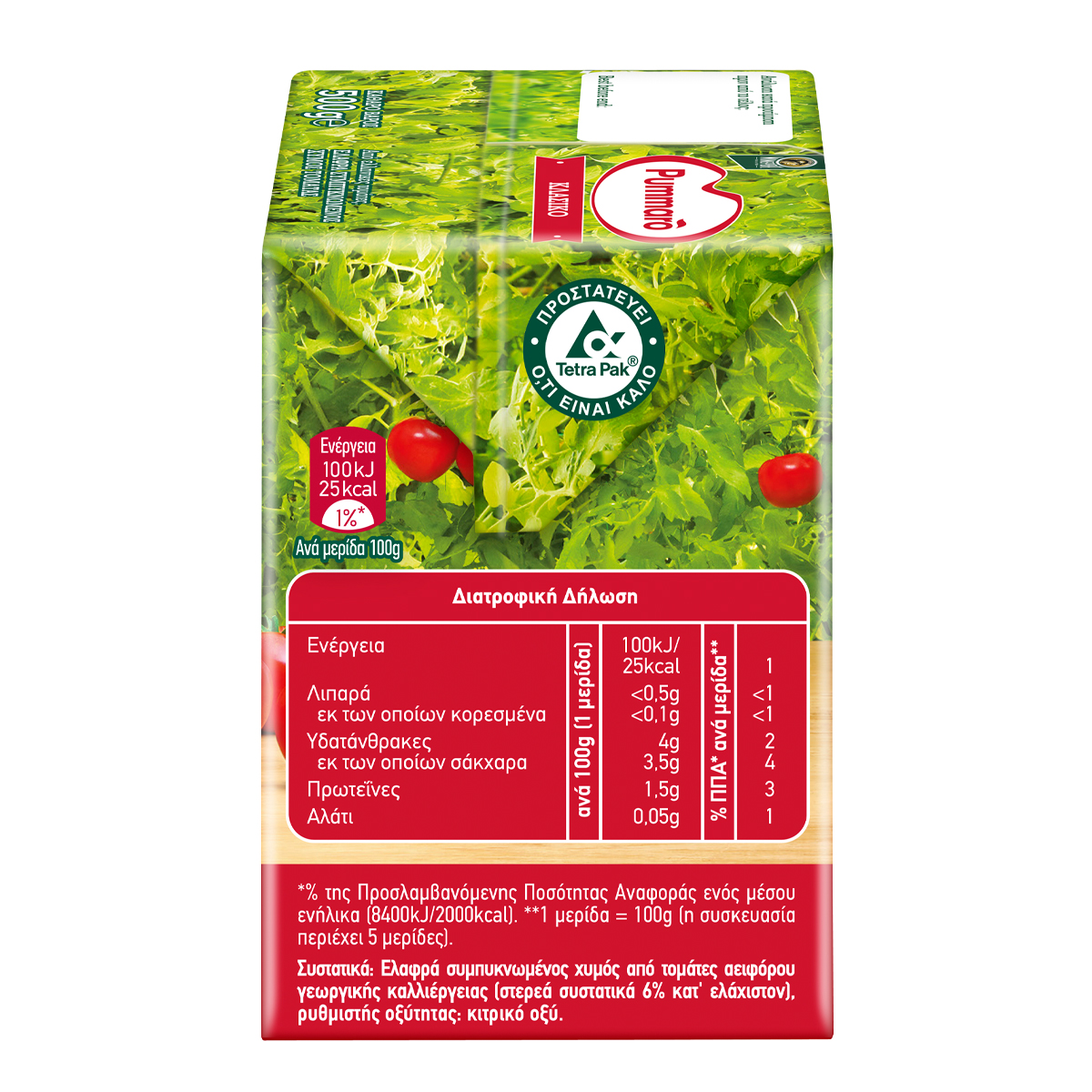 100% Ελληνικές τομάτες για υπέροχο άρωμα και γεύση στο φαγητό. Δοκιμάστε το σε μακαρονάδες, λαδερά, κοκκινιστά, όσπρια, αλλά και σε υπέροχες σάλτσες, σιγοβράζοντας σε χαμηλή φωτιά με τα μυρωδικά της αρεσκείας σας.