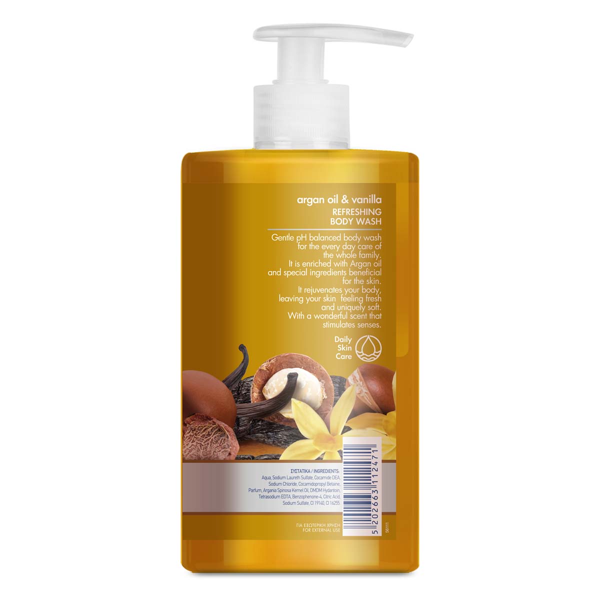 Η απαλή σύνθεσή του με Ουδέτερο pH, είναι εμπλουτισμένη με έλαιο argan και ειδικά συστατικά που δρουν ευεργετικά για την επιδερμίδα, προσφέροντας καθημερινή περιποίηση σε όλη την οικογένεια. Αναζωογονεί άμεσα, χαρίζοντας μοναδική απαλότητα και φρεσκάδα που διαρκεί. Με υπέροχο άρωμα που τονώνει τις αισθήσεις.