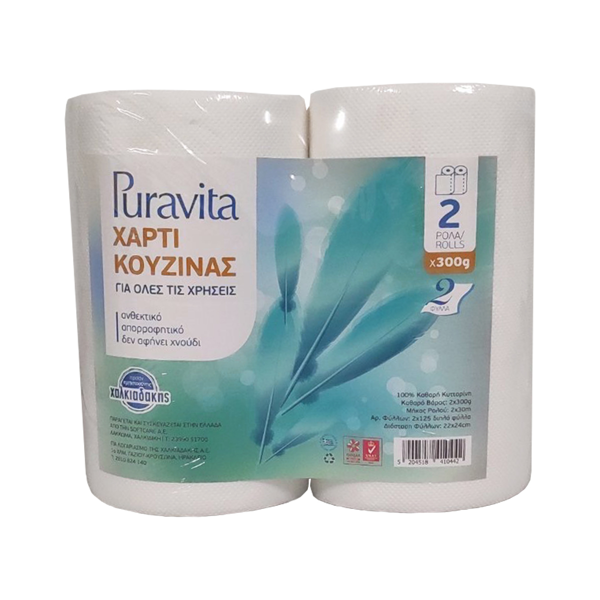 Puravita Χαρτί Κουζίνας 2φυλλο 2 Τεμάχια 600 gr