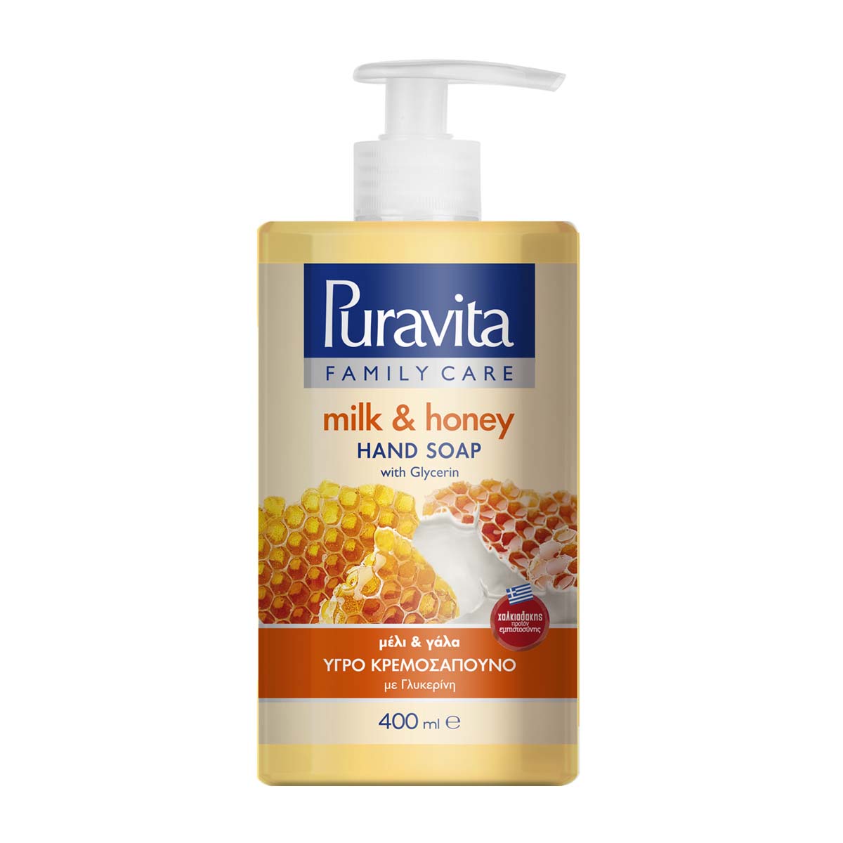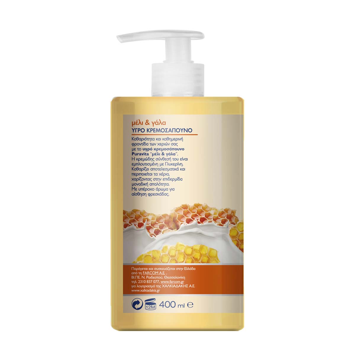 Puravita Υγρό Κρεμοσάπουνο Αντλία Μέλι & Γάλα 400 ml