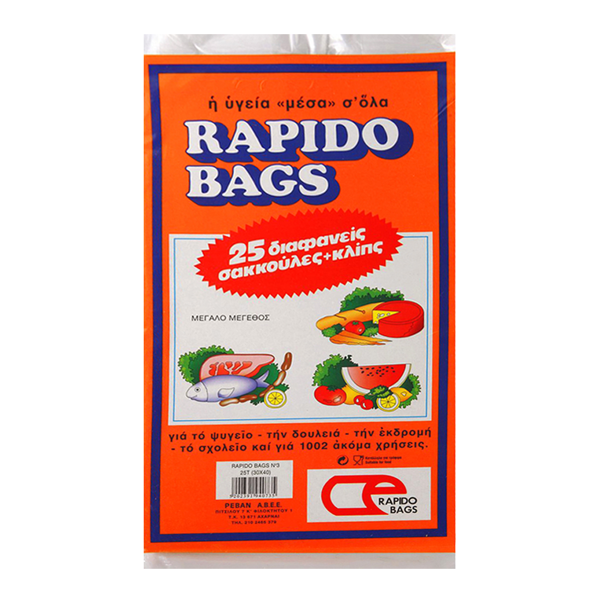 Rapido Bags Σακούλες Τροφίμων Με Κλιπς Μεγάλο Μέγεθος 25 Τεμάχια