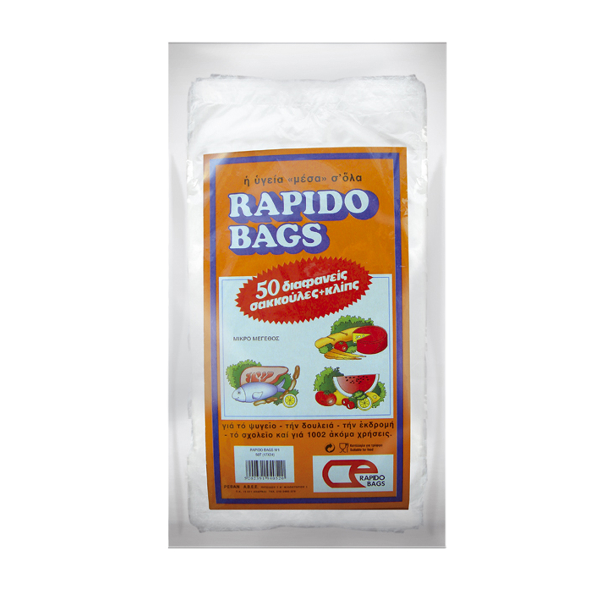 Rapido Bags Σακούλες Τροφίμων Με Κλιπς Μικρό Μέγεθος 50 Τεμάχια