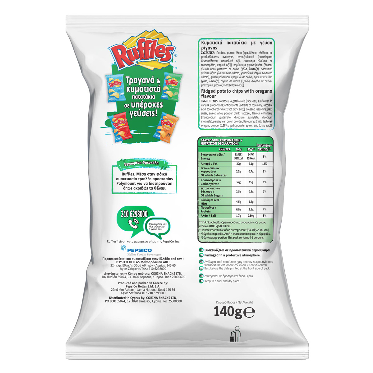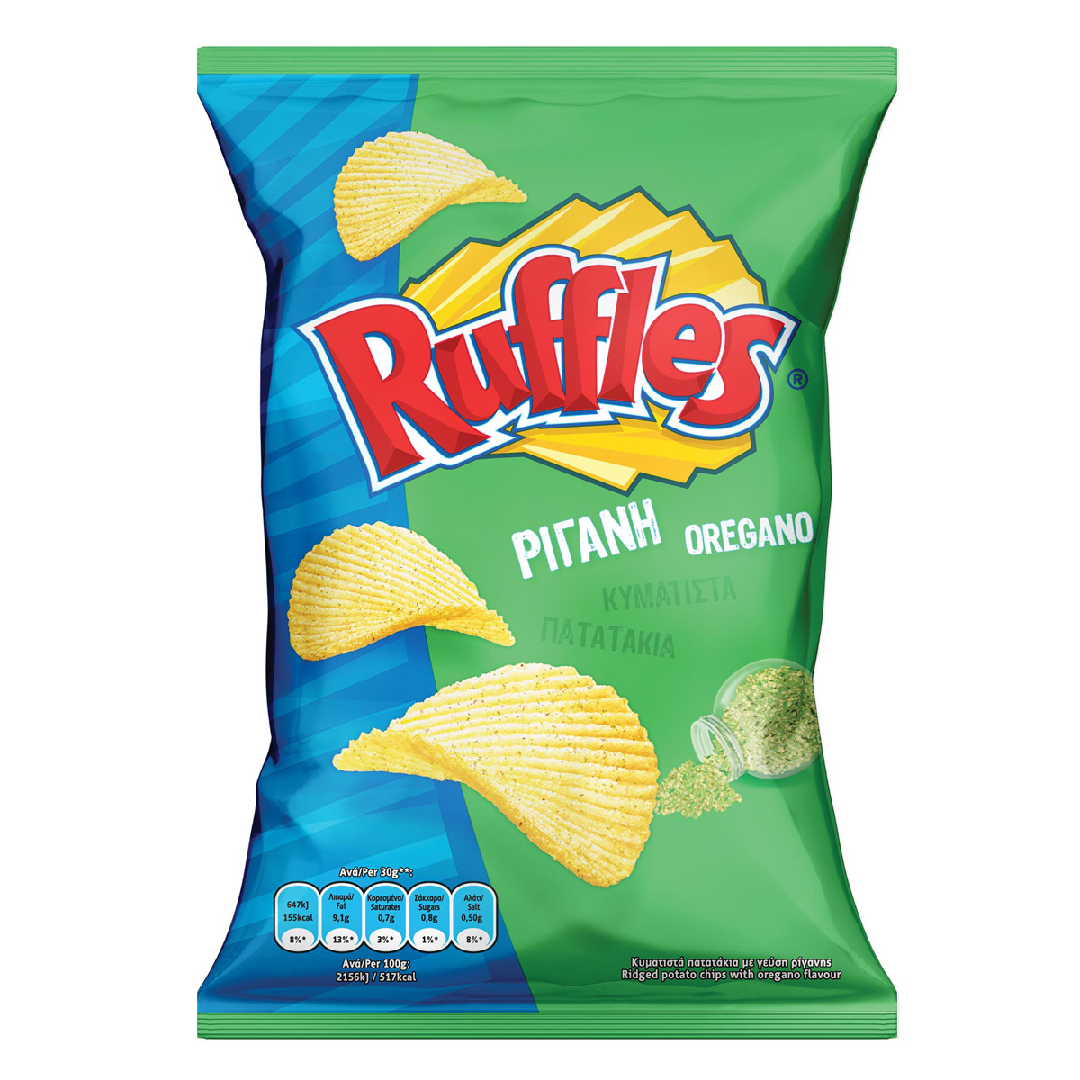 Κυματιστά πατατάκια με γεύση ρίγανης.
