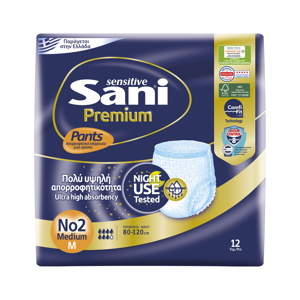 Sani Sensitive Pants Premium Εσώρουχα Ακράτειας N2 Medium 12 Τεμάχια