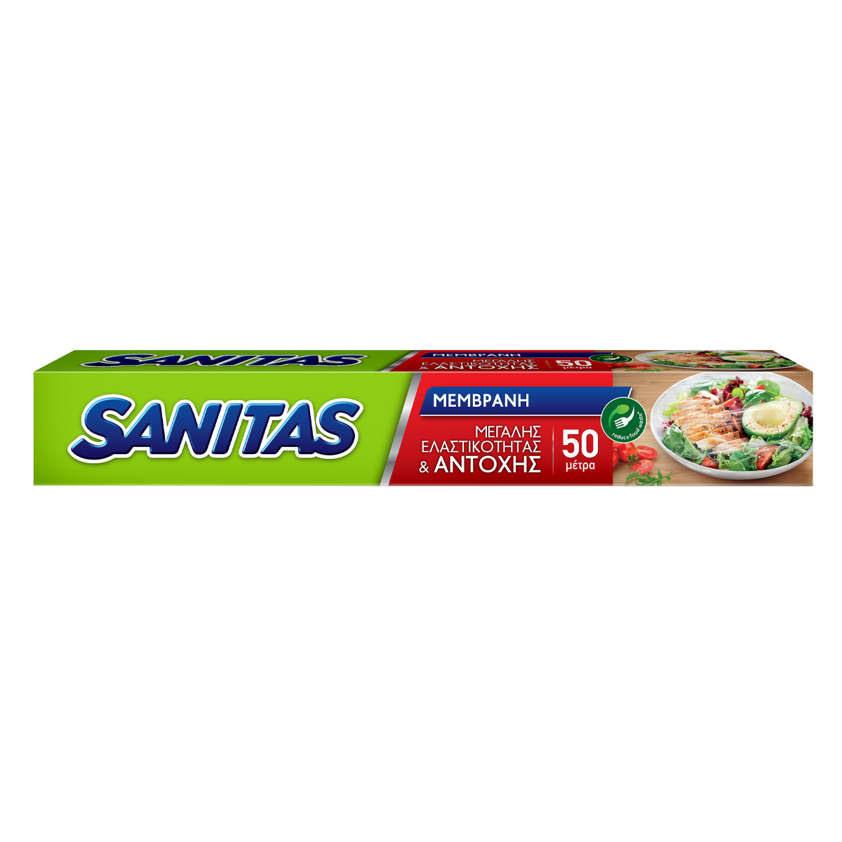 Η μεμβράνη Sanitas είναι υψηλής ελαστικότητας και αντοχής, ιδανική για συντήρηση των τροφίμων μέσα και έξω από το ψυγείο! Χάρη στη μεγάλη ελαστικότητά της εφαρμόζει εύκολα σε όλα τα σκεύη, εμποδίζοντας τη μεταφορά οσμών μεταξύ των τροφίμων. Είναι πολύ πρακτική στη χρήση, καθώς κόβεται εύκολα με ένα τράβηγμα για να τυλίξετε το σκεύος ή φαγητό που επιθυμείτε. -Υψηλής ελαστικότητας και αντοχής για τέλεια εφαρμογή -Πρακτική στη χρήση -Ιδανική για συντήρηση των τροφίμων μέσα και έξω από το ψυγείο -Κατάλληλη χρήση στην κατάψυξη σε θερμοκρασίες έως -30 °C -Εμποδίζει τη μεταφορά των οσμών μεταξύ των τροφίμων -Κατάλληλη για μακροχρόνια επαφή με όλα τα τρόφιμα.
