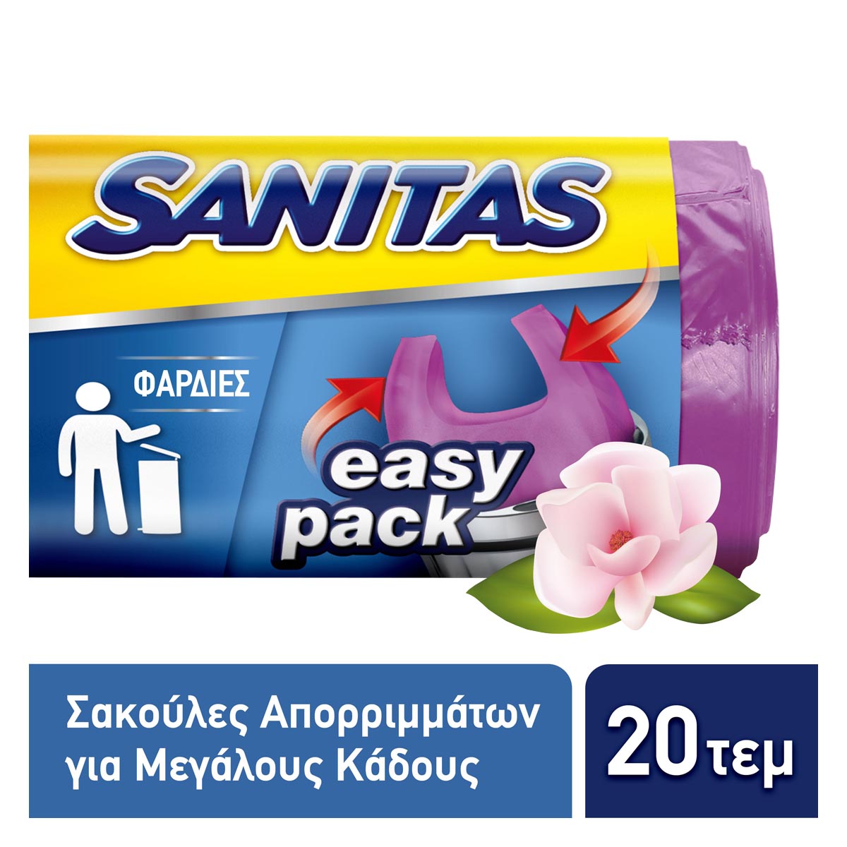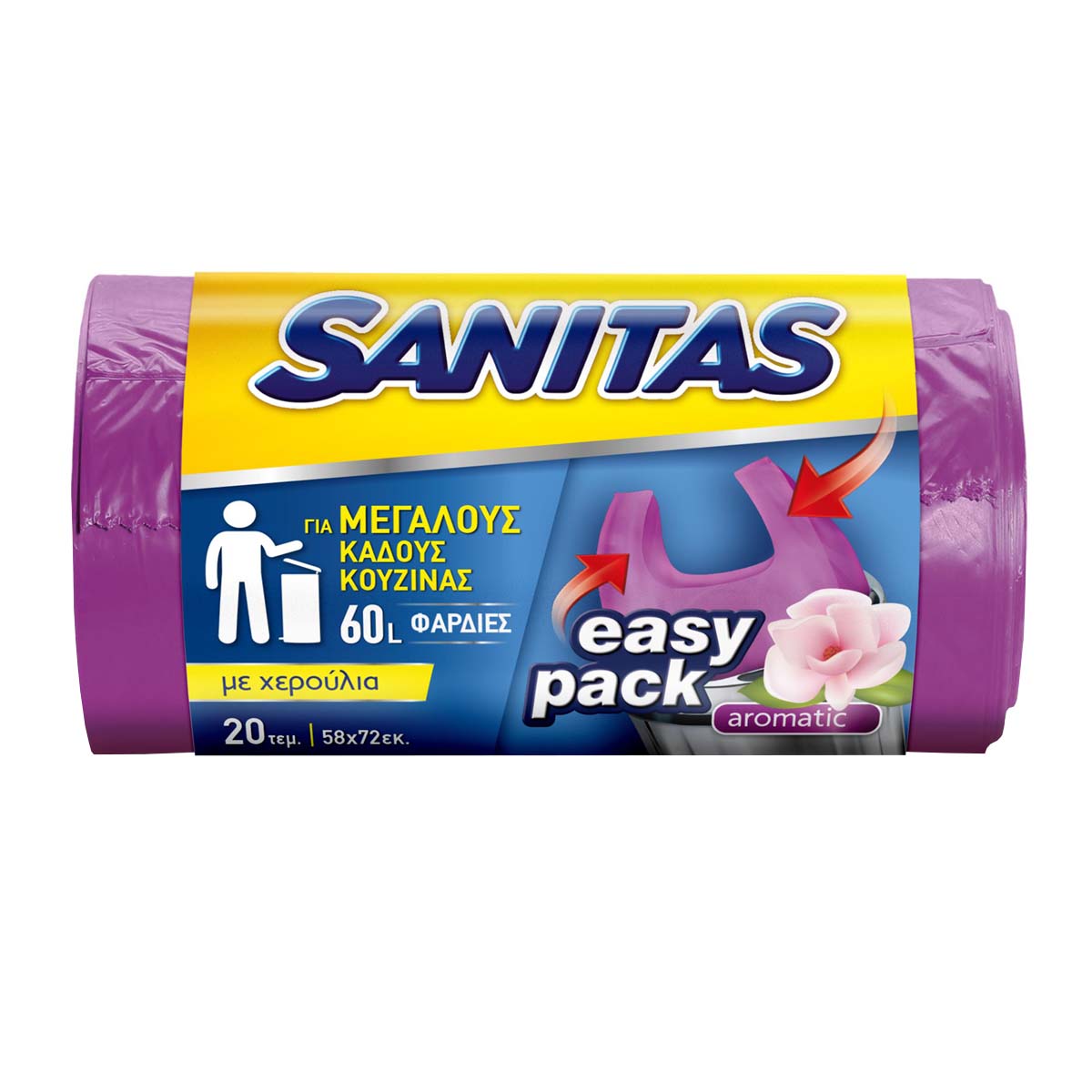 Οι αρωματικές σακούλες απορριμμάτων με χερούλια EASY PACK είναι ανθεκτικές χάρη στην ποιότητα του υλικού και την αστεροειδή ραφή στη βάση τους. Εφαρμόζουν τέλεια ακόμα και σε κάδους με φαρδύ στόμιο, ενώ διαθέτουν πρακτικά χερούλια που διευκολύνουν το κλείσιμο και τη μεταφορά των απορριμμάτων σας. Ιδανικές για μεγάλους κάδους κουζίνας. Διαστάσεις 58x72εκ. -Πρακτικά χερούλια -Για μεγάλους κουζίνας, 60L -Αρωματικές -Ανθεκτικές -Αστεροειδής ραφή στη βάση -Τέλεια εφαρμογή σε κάδους με φαρδύ στόμιο.
