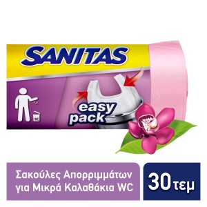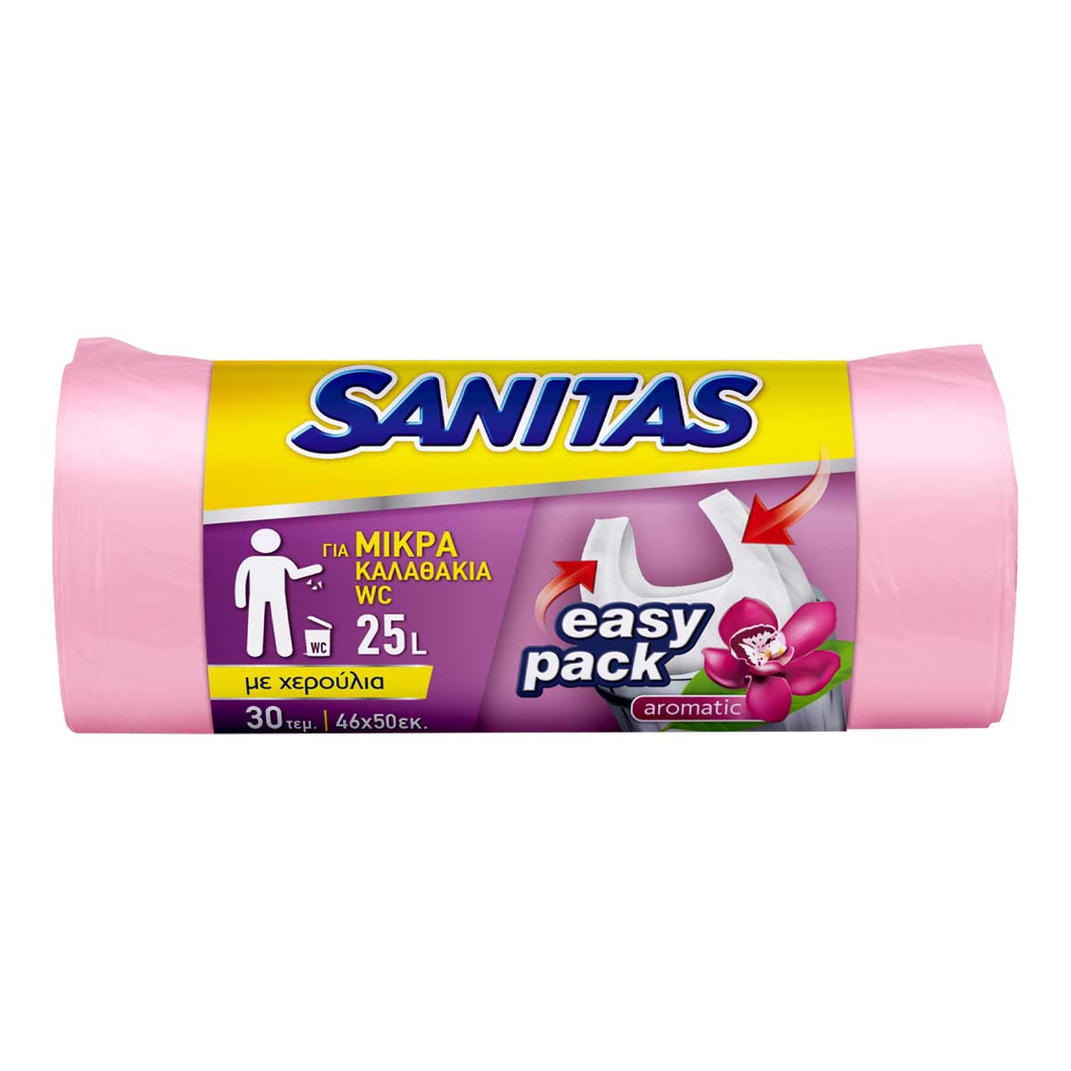 Οι αρωματικές σακούλες απορριμμάτων με χερούλια EASY PACK είναι ανθεκτικές χάρη στην ποιότητα του υλικού και την αστεροειδή ραφή στη βάση τους. Διαθέτουν πρακτικά χερούλια που διευκολύνουν το κλείσιμο και τη μεταφορά των απορριμμάτων σας και υπέροχο άρωμα φρεσκάδας. Ιδανικές για μικρά καλαθάκια WC. Διαστάσεις 46x50εκ. -Πρακτικά χερούλια -Για μικρά καλαθάκια WC, 25L -Αρωματικές -Ανθεκτικές -Αστεροειδής ραφή στη βάση.