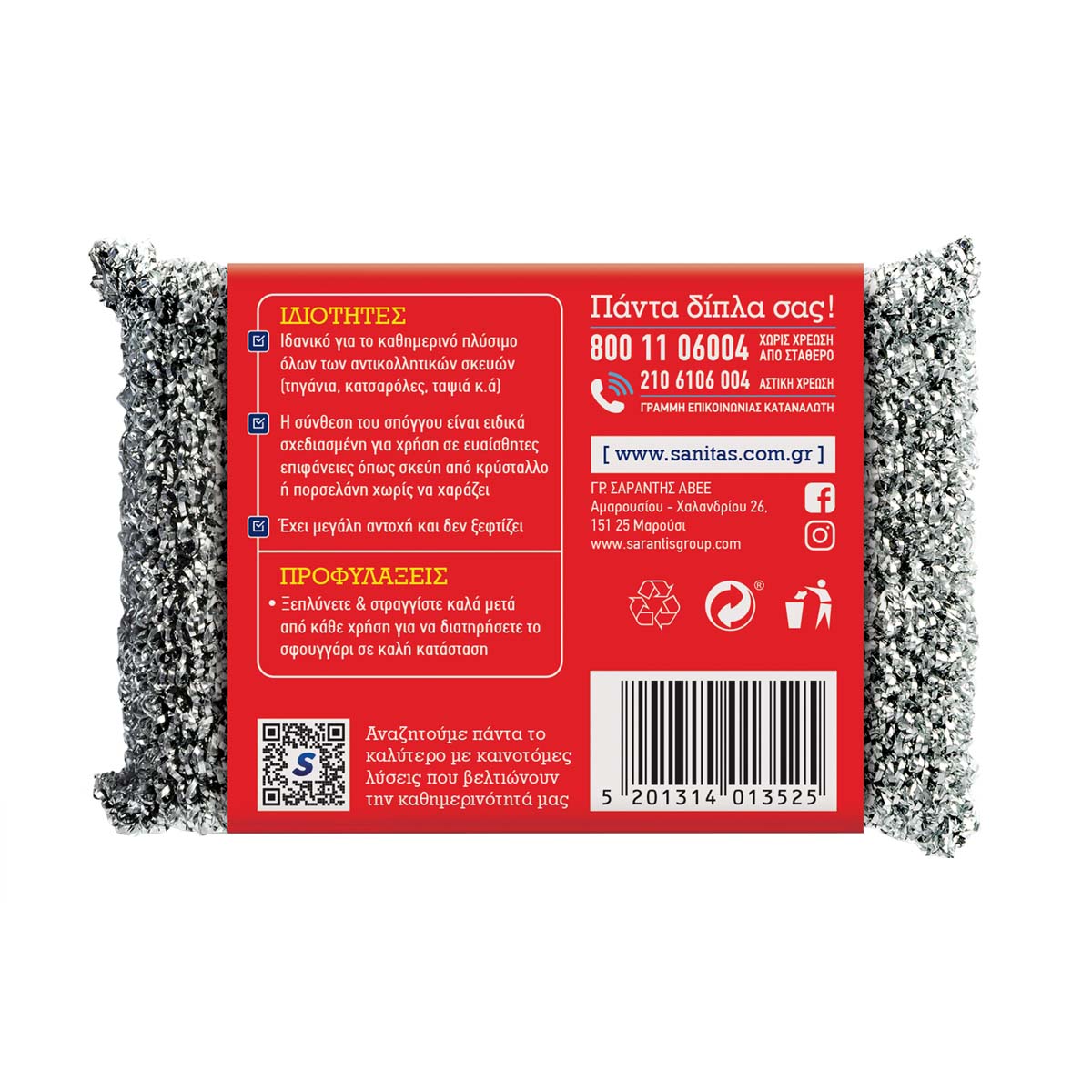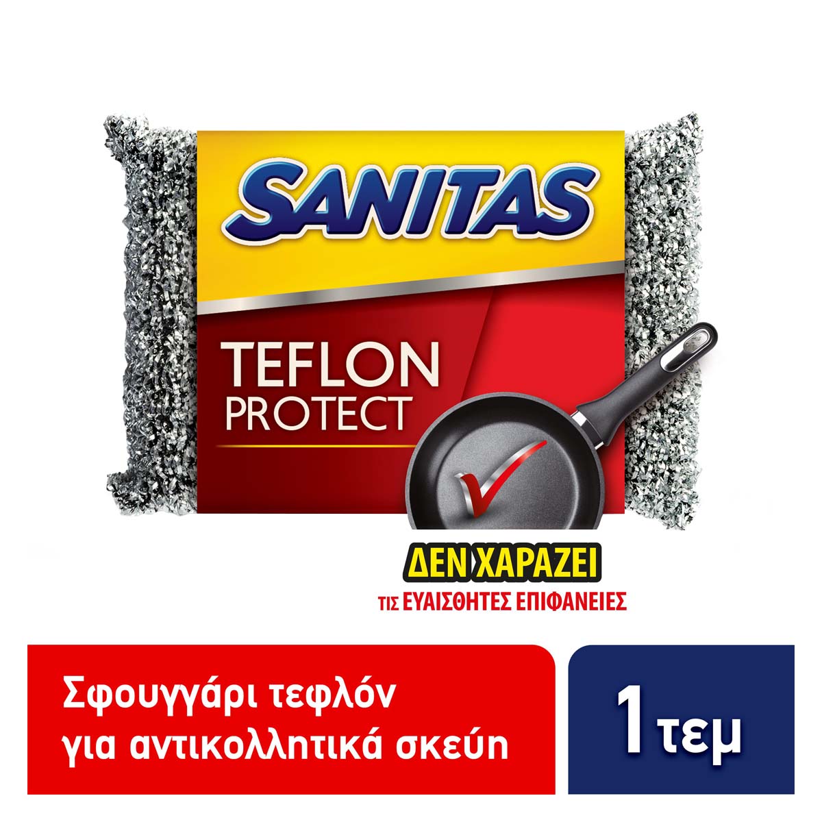 To σφουγγάρι για αντικολλητικά σκεύη Sanitas Teflon Protect είναι ιδανικό για το καθημερινό πλύσιμο όλων των αντικολλητικών σκευών (τηγάνια, κατσαρόλες, ταψιά κ.ά). Χάρη στην καινοτόμα σύνθεσή του, καθαρίζει άψογα τις ευαίσθητες επιφάνειες χωρίς να χαράζει ενώ είναι ειδικά σχεδιασμένο για χρήση ακόμα και σε επιφάνειες όπως σκεύη από κρύσταλλο. Καθαρίζει εύκολα ενώ καθαρίζεται ακόμα ευκολότερα χωρίς να συγκρατεί κατάλοιπα τροφών και βρωμιάς. 1τεμ Ιδανικό για αντικολλητικά σκεύη Δεν χαράζει τις ευαίσθητες επιφάνειες Μεγάλης αντοχής Δεν ξεφτίζει Καθαρίζει και καθαρίζεται γρήγορα και εύκολα.