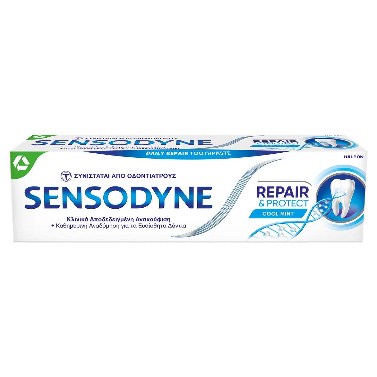 H Sensodyne Repair & Protect είναι μια οδοντόκρεμα καθημερινής χρήσης που συνδυάζει την προηγμένη τεχνολογία Novamin με το φθόριο. Η Sensodyne Repair & Protect εντοπίζει τα ευαίσθητα σημεία των δοντιών σας. Όταν έρχεται σε επαφή με το σάλιο, το συστατικό Novamin ενεργοποιείται και προσκολλάται ισχυρά στην εκτεθειμένη οδοντίνη, σχηματίζοντας ένα προστατευτικό κάλυμμα που βοηθά στην αναδόμηση* αυτών των ευαίσθητων περιοχών. Με βούρτσισμα δύο φορές την ημέρα, η Sensodyne Repair & Protect συνεχίζει να αναδομεί, να ενδυναμώνει και να προστατεύει τα δόντια σας, ενώ παράλληλα προσφέρει αποτελεσματική ανακούφιση από την ευαισθησία που διαρκεί. Η Sensodyne Repair & Protect μπορεί να αναδομήσει τα ευαίσθητα δόντια σας, για προστασία από την ευαισθησία που διαρκεί. Με δύο φορές βούρτσισμα την ημέρα, η Sensodyne Repair & Protect παρέχει κλινικά αποδεδειγμένη ανακούφιση από τον έντονο και ενοχλητικό πόνο της ευαισθησίας.