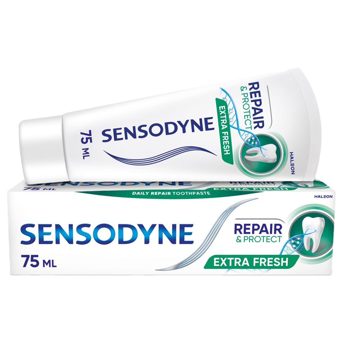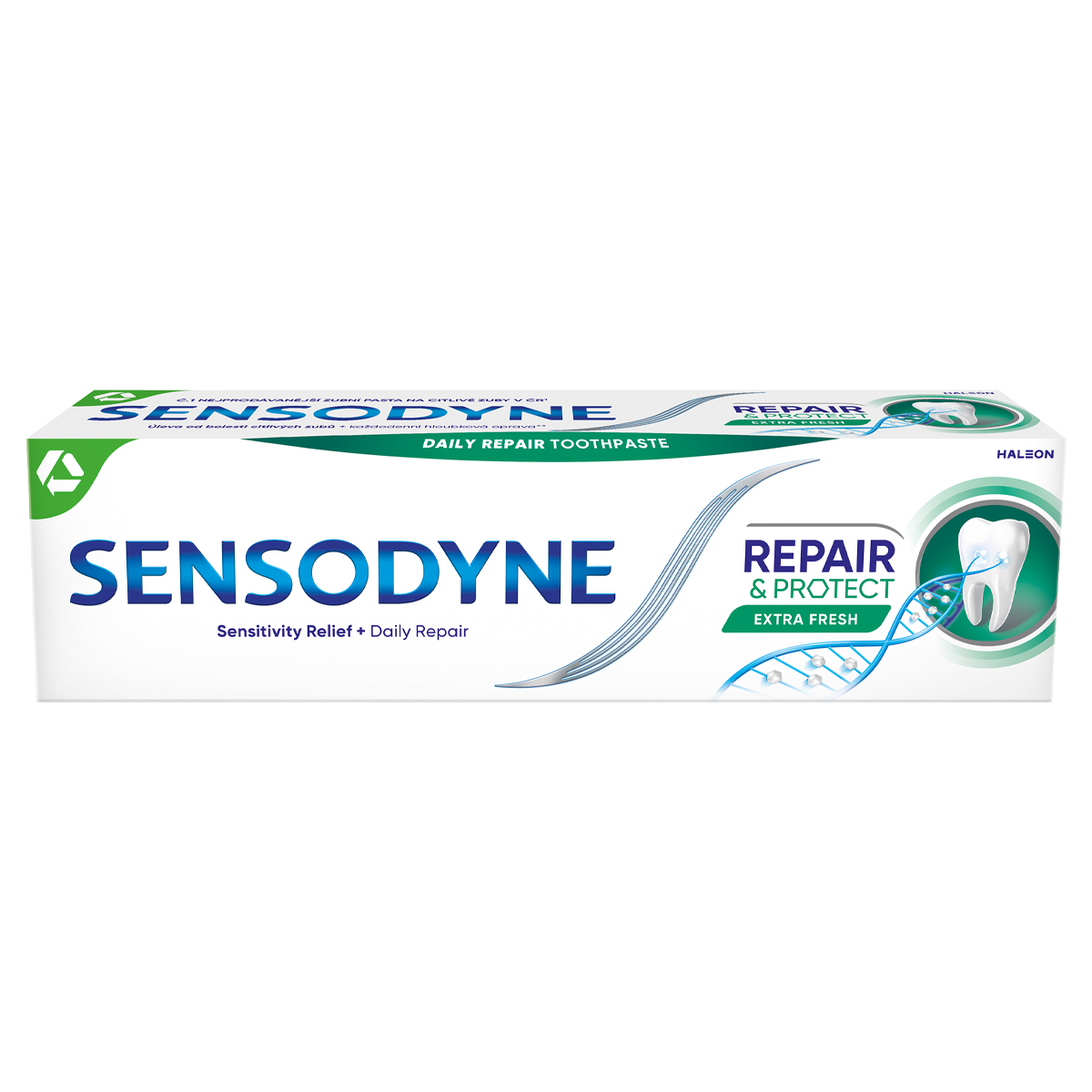 H Sensodyne Repair & Protect είναι μια οδοντόκρεμα καθημερινής χρήσης που συνδυάζει την προηγμένη τεχνολογία Novamin με το φθόριο. Η Sensodyne Repair & Protect εντοπίζει τα ευαίσθητα σημεία των δοντιών σας. Όταν έρχεται σε επαφή με το σάλιο, το συστατικό Novamin ενεργοποιείται και προσκολλάται ισχυρά στην εκτεθειμένη οδοντίνη, σχηματίζοντας ένα προστατευτικό κάλυμμα που βοηθά στην αναδόμηση* αυτών των ευαίσθητων περιοχών. Με βούρτσισμα δύο φορές την ημέρα, η Sensodyne Repair & Protect συνεχίζει να αναδομεί, να ενδυναμώνει και να προστατεύει τα δόντια σας, ενώ παράλληλα προσφέρει αποτελεσματική ανακούφιση από την ευαισθησία που διαρκεί. Επιπλέον, με τα εκχυλίσματα ευκαλύπτου και μέντας που περιέχει, αφήνει μια έντονη αίσθηση καθαρισμού και φρεσκάδας στο στόμα. Η Sensodyne Repair & Protect μπορεί να αναδομήσει τα ευαίσθητα δόντια σας, για προστασία από την ευαισθησία που διαρκεί. Με δύο φορές βούρτσισμα την ημέρα, η Sensodyne Repair & Protect παρέχει κλινικά αποδεδειγμένη ανακούφιση από τον έντονο και ενοχλητικό πόνο της ευαισθησίας.