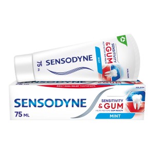 Είναι κλινικά αποδεδειγμένο ότι η οδοντόκρεμα Sensodyne Sensitivity & Gum ανακουφίζει από την ευαισθησία των δοντιών και βελτιώνει την υγεία των ούλων. Η σύνθεση διπλής δράσης που διαθέτει, λειτουργεί με δύο τρόπους: Σχηματίζει ένα προστατευτικό κάλυμμα πάνω από τις ευαίσθητες περιοχές των δοντιών, ανακουφίζοντας αποτελεσματικά από τον πόνο της ευαισθησίας. Ταυτόχρονα απομακρύνει τη βακτηριακή πλάκα*, συμβάλλοντας στη βελτίωση της υγείας των ούλων. Για διπλή ανακούφιση από την ευαισθησία των δοντιών & από τα προβλήματα των ούλων, χρησιμοποιήστε οδοντόκρεμα Sensodyne Sensitivity & Gum.