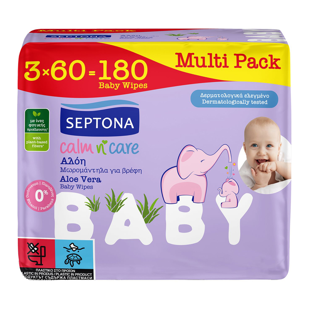 Septona Baby Μωρομάντηλα Calm N' Care Αλόη 3 x 60 Τεμάχια