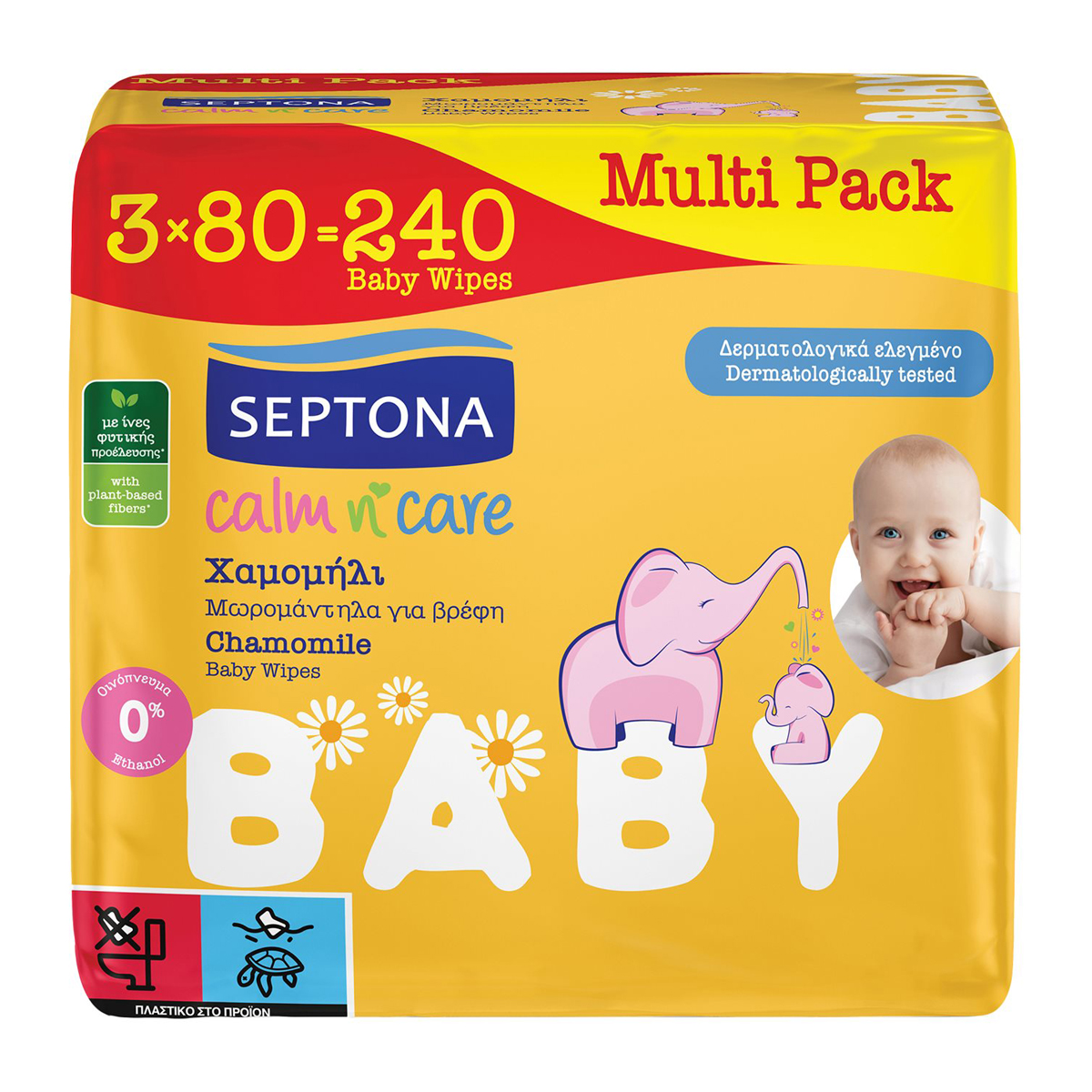 Septona Baby Μωρομάντηλα Calm N' Care Χαμομήλι 3 x 80 Τεμάχια