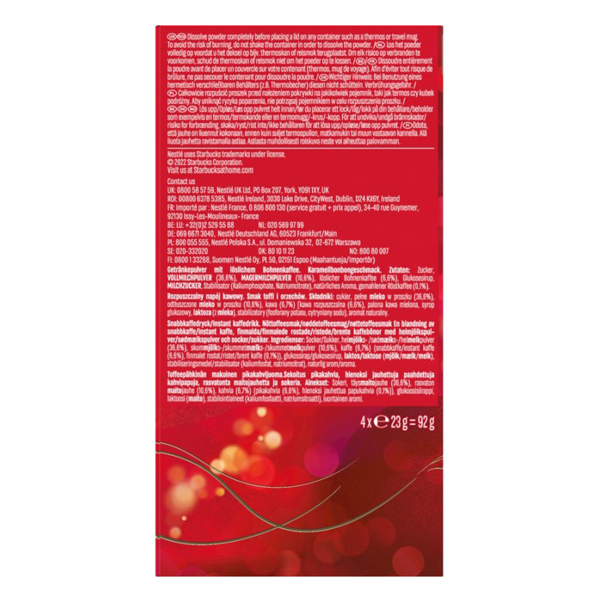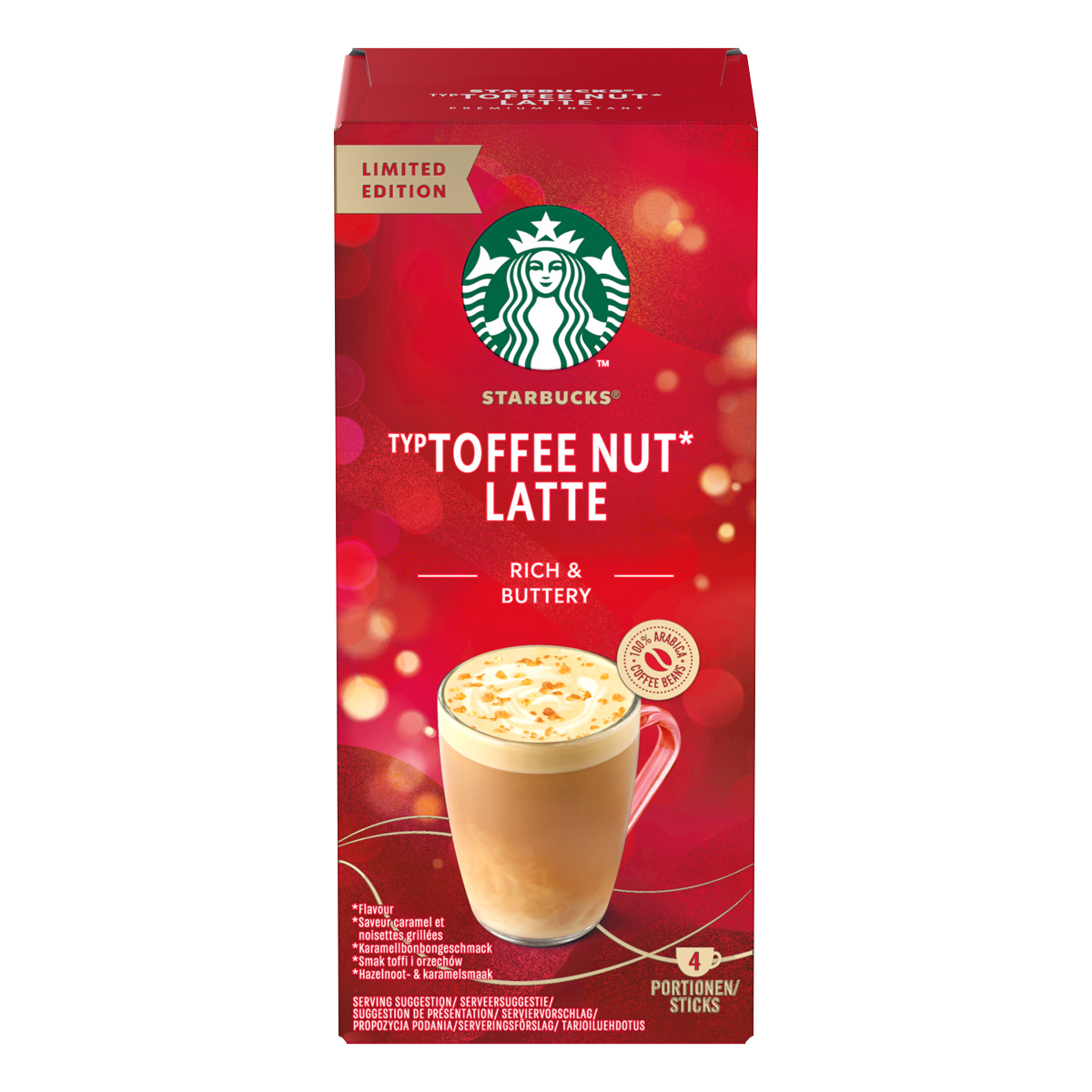 Για να γιορτάσουμε τη χαρά της εορταστικής περιόδου, δημιουργήσαμε ένα απολαυστικό στιγμιαίο ρόφημα καφέ, το STARBUCKS® Toffee Nut Latte Limited Edition. Ένα εποχιακό αγαπημένο ρόφημα, πλούσιο και κρεμώδες, εμπνευσμένο από τον εμβληματικό καφέ Toffee Nut Latte, για να το ετοιμάσετε στο σπίτι. Είναι φτιαγμένο από τους ίδιους υψηλής ποιότητας κόκκους καφέ 100% Arabica που χρησιμοποιούνται στα καταστήματα STARBUCKS®, με πλούσια γεύση καραμέλας βουτύρου και ξηρών καρπών και με ένα απαλό στρώμα αφρού.