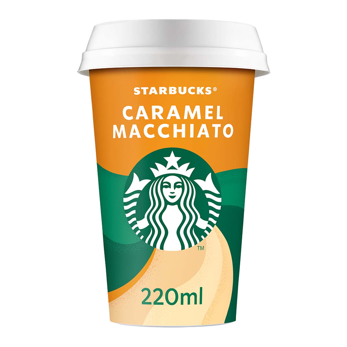 Starbucks Caramel Macchiato. Έτοιμο προς κατανάλωση ρόφημα με καφέ 100% ποικιλίας Arabica. Ο καφές και η ζάχαρη συνάδουν με τα πρότυπα Fairtrade.