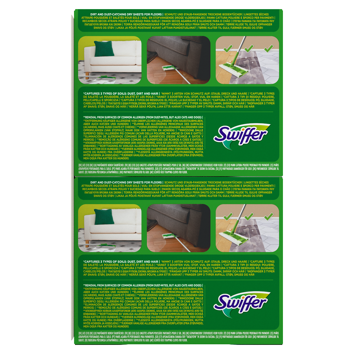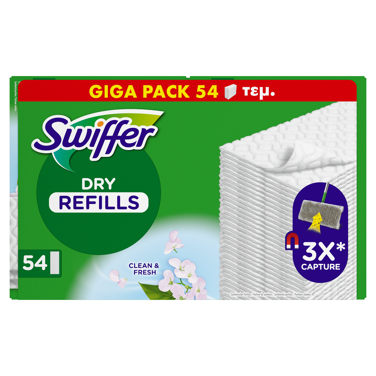 Τα στεγνά ανταλλακτικά πανάκια Swiffer Clean & Fresh χρησιμοποιούνται με τη λαβή Swiffer για να παγιδέψουν και να «κλειδώσουν» βρωμιά, σκόνη και τρίχες από οποιαδήποτε επιφάνεια στο σπίτι σας, 3 φορές καλύτερα από μια παραδοσιακή σκούπα, ενώ αφήνουν μοναδικό άρωμα φρεσκάδας στα πατώματά σας. Τα στεγνά πανάκια Swiffer σας δίνουν τη δυνατότητα να επαναφέρετε την καθαριότητα στο σπίτι σας σε χρόνο μηδέν, χωρίς κόπο και χωρίς θόρυβο. Είναι ιδανικά για να αιχμαλωτίζουν τη σκόνη σε στενές γωνίες ή σε δυσπρόσιτα σημεία, όπως κάτω από τον καναπέ και το κρεβάτι όπου δεν μπορούν να φτάσουν πάντα οι σκούπες και η ηλεκτρική σκούπα. Η πυκνότητα και το συγκεκριμένο μοτίβο που διαθέτουν τα πανάκια, σε συνδυασμό με την ηλεκτροστατική τους δράση, σας δίνουν τη δυνατότητα να παγιδεύετε και να κλειδώνετε όλη τη σκόνη στο πανάκι. Επιπλέον, θα αφήσουν στο δωμάτιο μια φρεσκάδα που διαρκεί πολύ. Με τα στεγνά πανάκια Swiffer, το καθάρισμα του πατώματος δεν ήταν ποτέ πιο εύκολο και γρήγορο! Συμβουλές που πρέπει να γνωρίζετε: Είναι ιδιαίτερα βολικά για να μαζεύετε τις τρίχες του κατοικίδιου σας, καθώς τα περισσότερα ζωάκια χάνουν τρίχες όλο τον χρόνο, ή εάν έχετε αλλεργία στη σκόνη. Σημειώστε ότι το πανάκι Swiffer μπορεί να χρησιμοποιηθεί σε όλες τις σκληρές επιφάνειες, όπως: κερωμένο και μη κερωμένο λινοτάπητα, βινύλιο, πλακάκια και επεξεργασμένα ξύλινα πατώματα.
