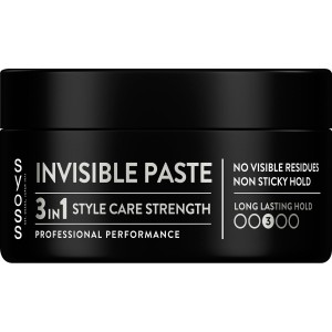 Με περισσότερα από 45 χρόνια ιστορίας στην περιποίηση μαλλιών, τα προϊόντα Syoss έχουν σχεδιαστεί για επαγγελματική απόδοση στο styling μαλλιών. Η 3 σε 1 φόρμουλα styling, περιποίησης, επανόρθωσης, για χτενίσματα μεγάλης διάρκειας με υγιή όψη - με σύμπλεγμα βιταμινών, συνδυασμό πανθενόλης και νιασιναμίδης, για ενδυνάμωση της δομής της τρίχας. Το Syoss Invisible Paste προσφέρει φυσικό αποτέλεσμα. Δεν κολλάει τα μαλλιά, δεν αφήνει κατάλοιπα.