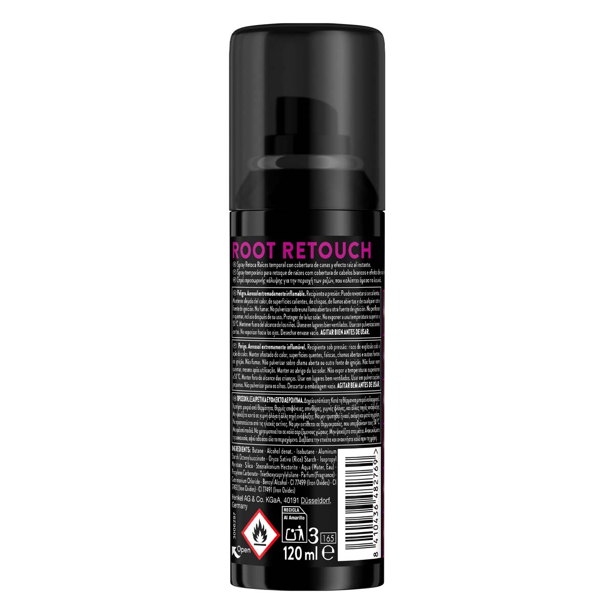 Σπρέι προσωρινής κάλυψης για την περιοχή των ριζών, που καλύπτει άμεσα τα λευκά. Στεγνώνει γρήγορα και χαρίζει ένα ομοιόμορφο αποτέλεσμα χωρίς να δημιουργεί αντίθεση με το χρώμα των μαλλιών σας. Η μεγάλης ακρίβειας βαλβίδα ψεκασμού επιτρέπει την εφαρμογή μόνο στα σημεία που χρειάζεται. Διαρκεί μέχρι το επόμενο λούσιμο. Ποσότητα επαρκής για έως και 40 εφαρμογές. Εφαρμογή: Ανακινήστε καλά πριν τη χρήση. Καλύψτε τους ώμους σας με μια πετσέτα. Ψεκάστε κρατώντας το μπουκάλι σε όρθια θέση ασκώντας απαλή πίεση. Εφαρμόστε ομοιόμορφα σε στεγνές και χτενισμένες ρίζες, ψεκάζοντας απαλά από απόσταση 10 εκ. Χρησιμοποιήστε το σε μικρή ποσότητα. Η υπερβολική ποσότητα μπορεί να προκαλέσει τριβή. Κατάλληλο για καθημερινή χρήση ανάμεσα στις βαφές.