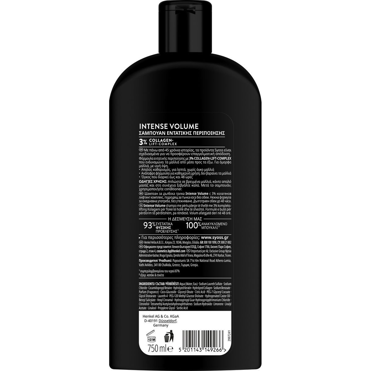 Με πάνω από 45 χρόνια ιστορίας, τα προϊόντα Syoss είναι σχεδιασμένα για να προσφέρουν επαγγελματική απόδοση. Φόρμουλα εντατικής περιποίησης με 3% COLLAGEN-LIFT-COMPLEX που ενδυναμώνει τα μαλλιά από μέσα προς τα έξω. Για όμορφα μαλλιά, με υγιή όψη. Απαλός καθαρισμός, για λεπτά, χωρίς όγκο μαλλιά. Ανάλαφρη φόρμουλα για καθημερινή χρήση, δεν βαραίνει τα μαλλιά. Όγκος που διαρκεί έως και 48 ώρες. Η ΔΕΣΜΕΥΣΗ ΜΑΣ. 93% συστατικά φυσικά προέλευσης. 100% ανακυκλωμένο σώμα μπουκαλιού.