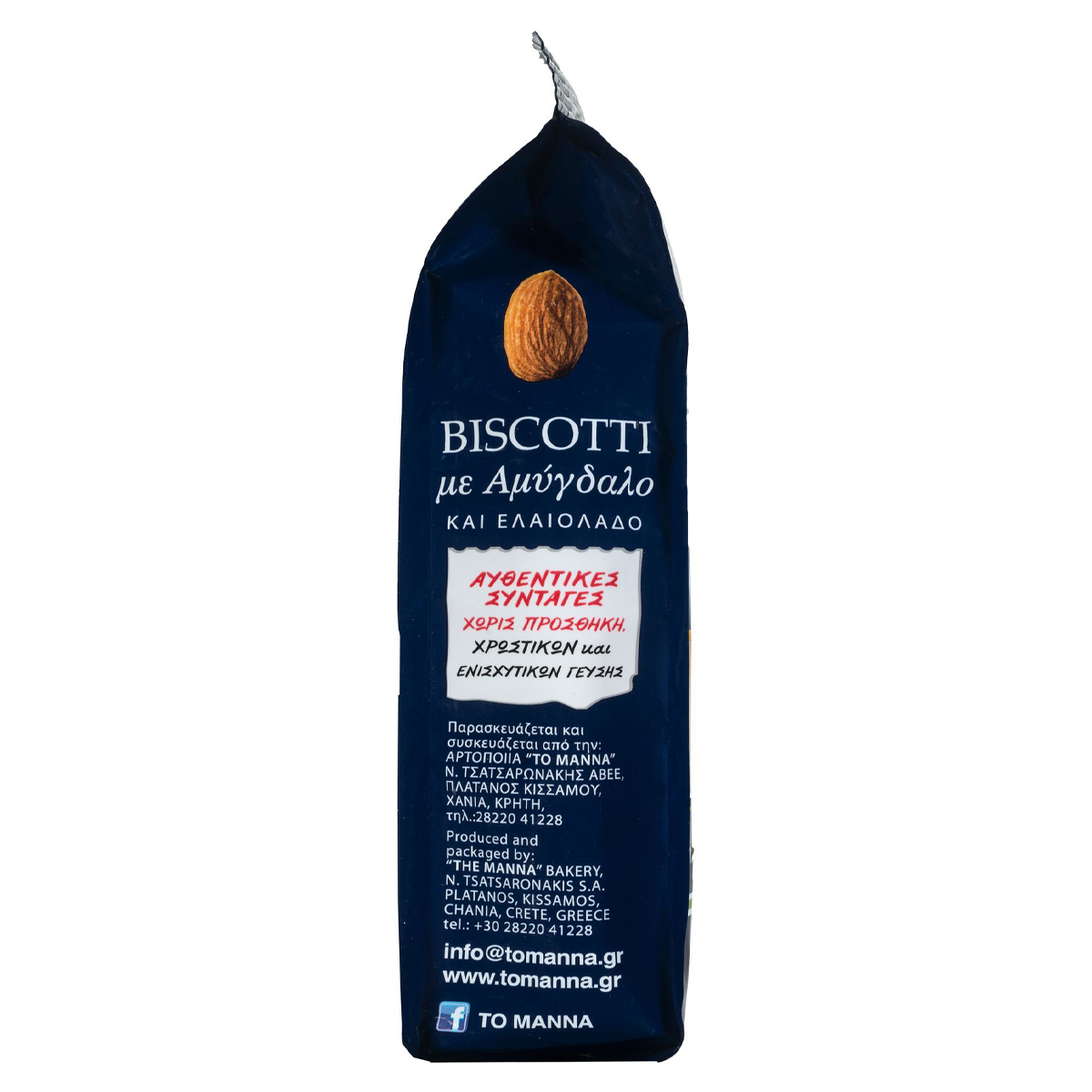 Αγνά, λαχταριστά ατόφια Κρητικά μπισκότα. Αυτά είναι Το Μάννα Biscotti με αμύγδαλο και ελαιόλαδο. Μικρές, απολαυστικές, γλυκιές μπουκιές για να τις απολαμβάνεις στο σπίτι, στο γραφείο, μόνος ή με παρέα. Προσοχή! Είναι άκρως εθιστικά.